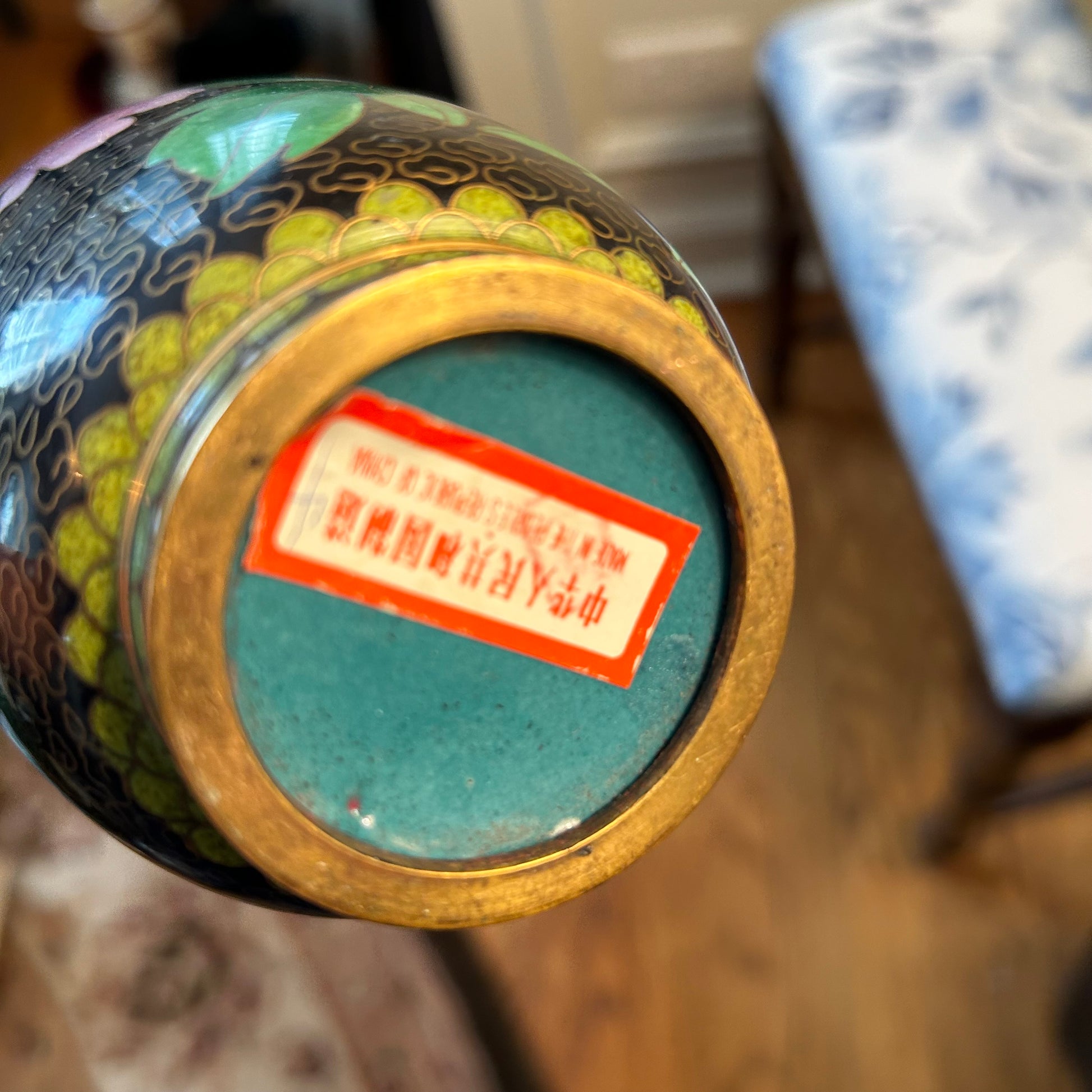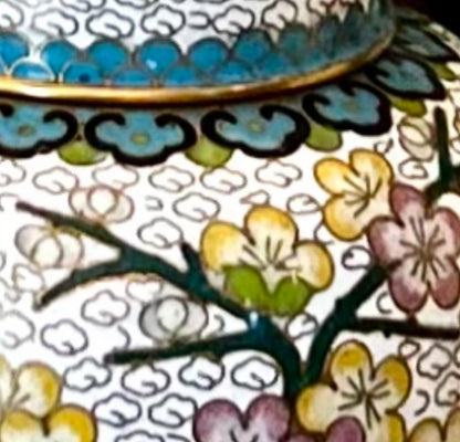 This classic, 6.5 inch-tall brass and enamel cloisonné etched ginger jar have a stunning floral design.no dents