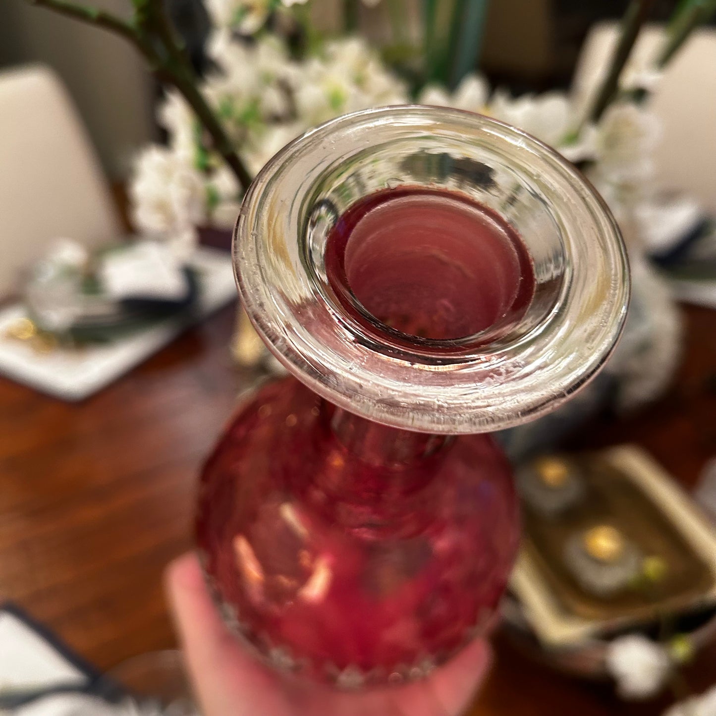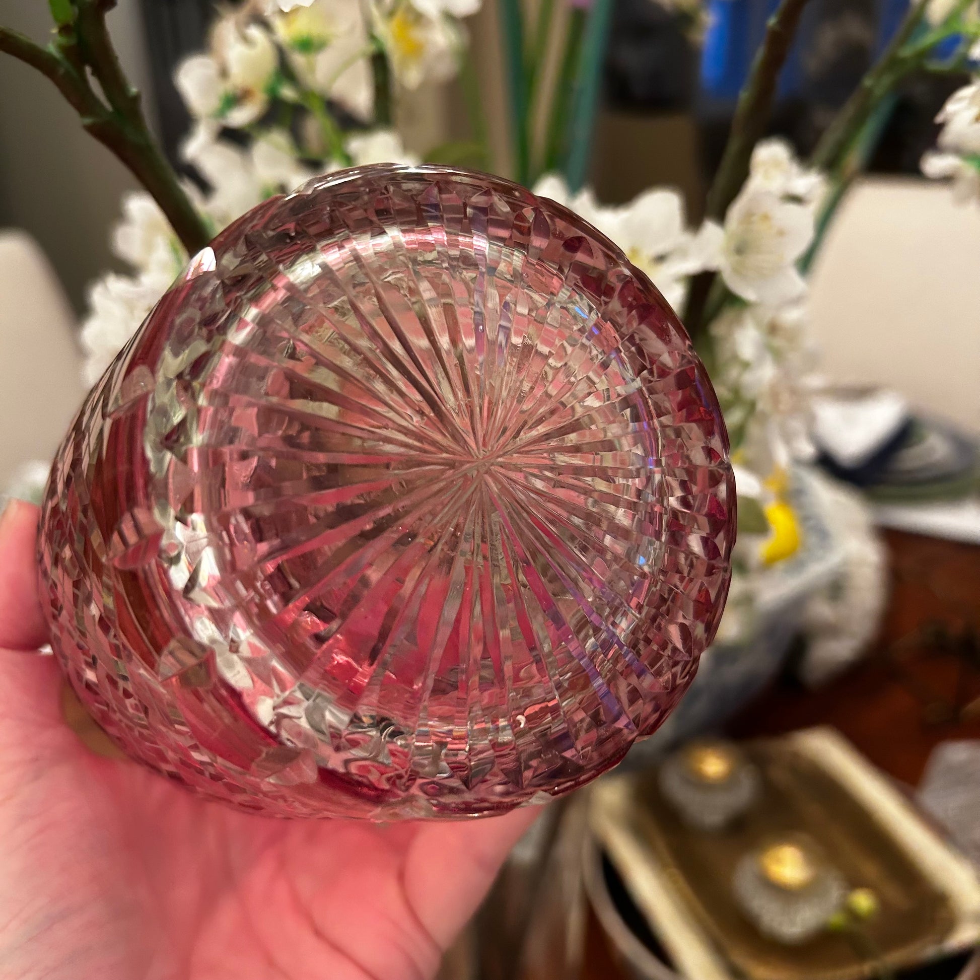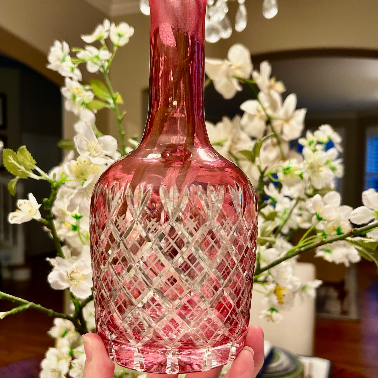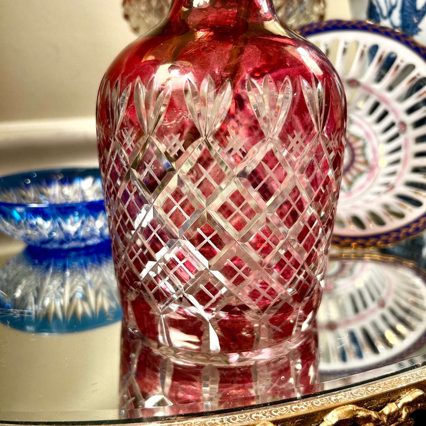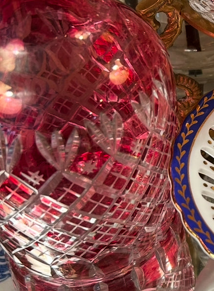 delightful vintage pink red cut crystal vase decanter