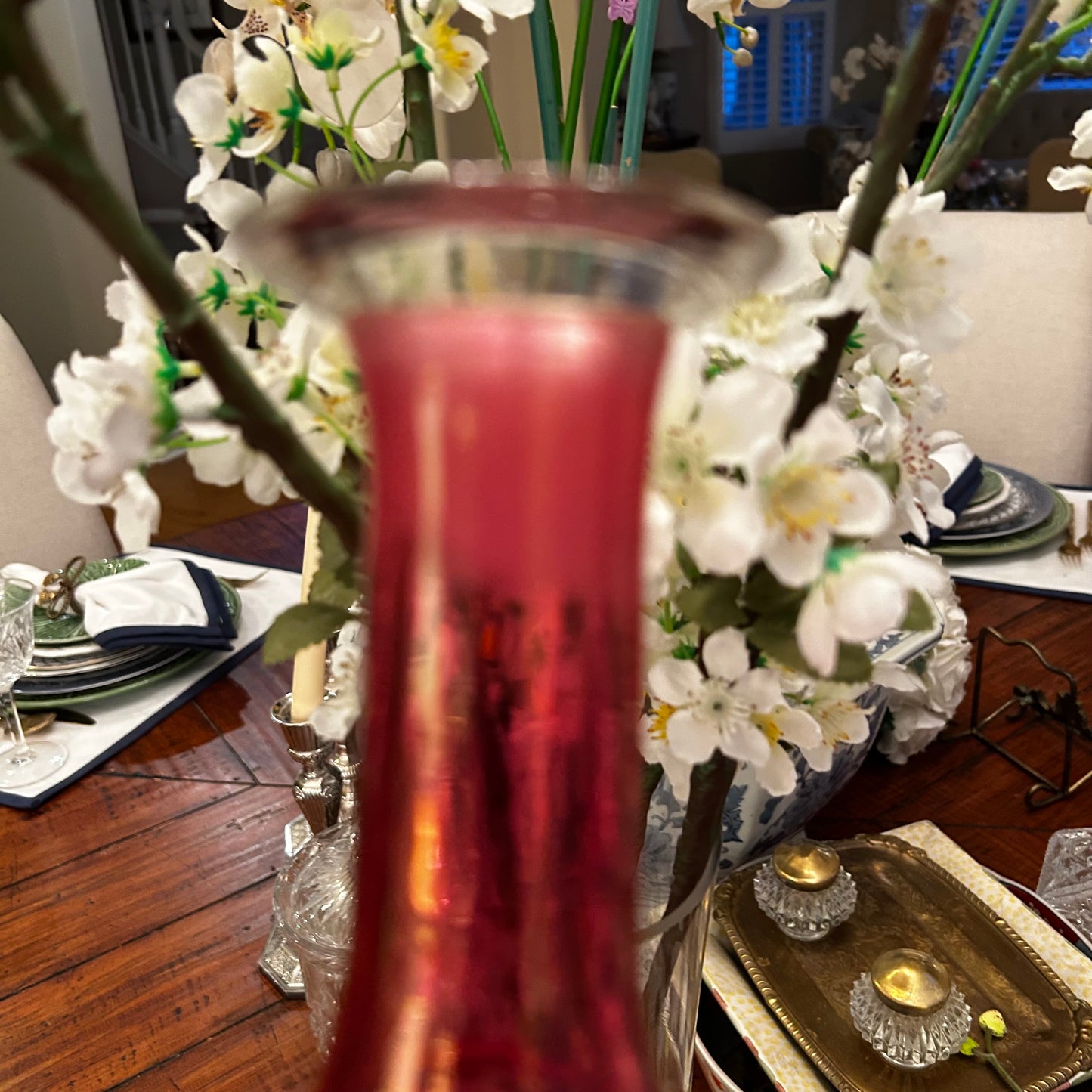 This delightful vintage pink and red cut crystal vase is both functional and elegant, making it perfect for serving or display purposes. Its flawless condition, free of any chips or cracks, ensures a beautiful addition to any holiday table scape. With dimensions of 8 inches height by 3 inches diameter, this vase is a versatile and timeless piece for any home.