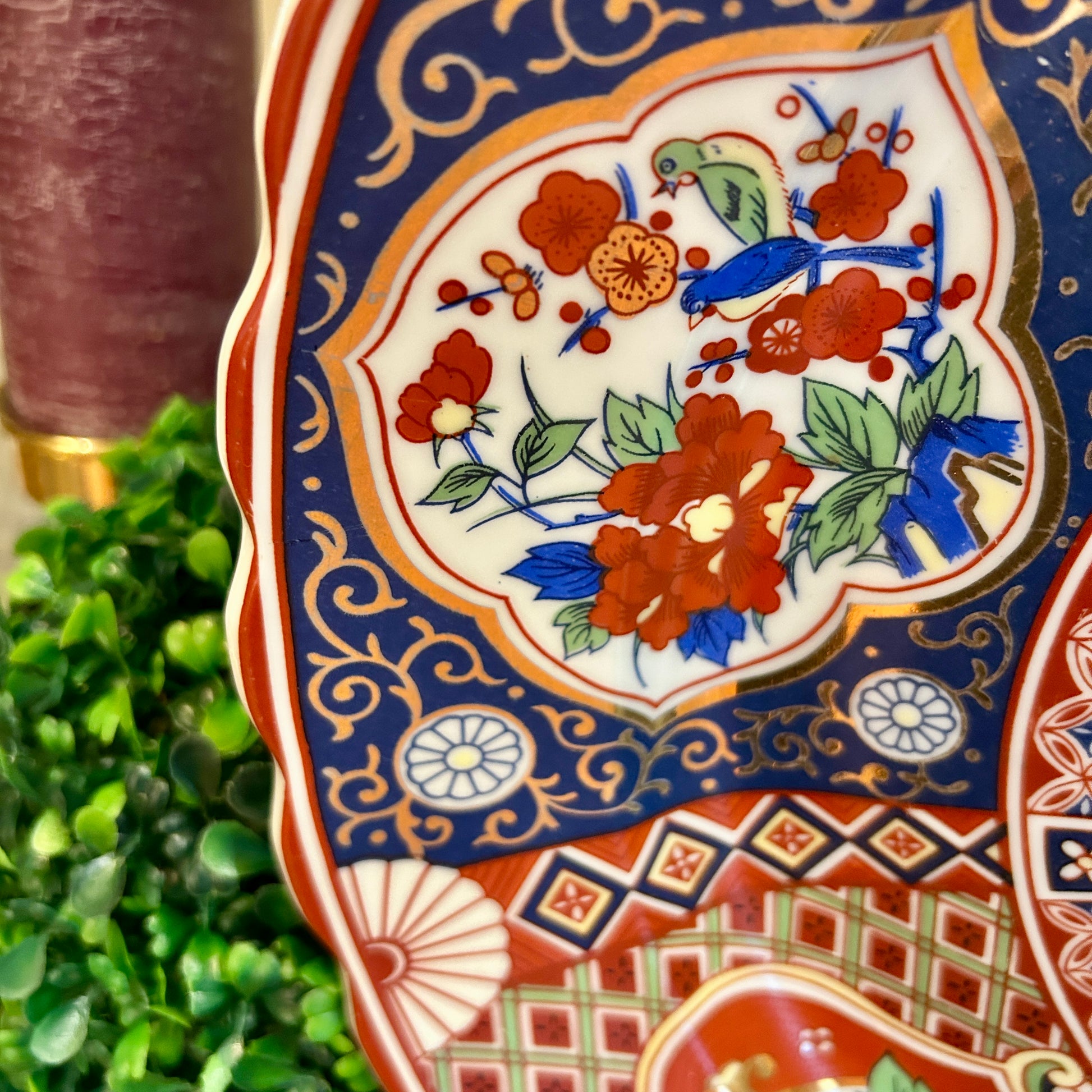 Gorgeous chinoiserie Imari style scalloped massive 16 in platter