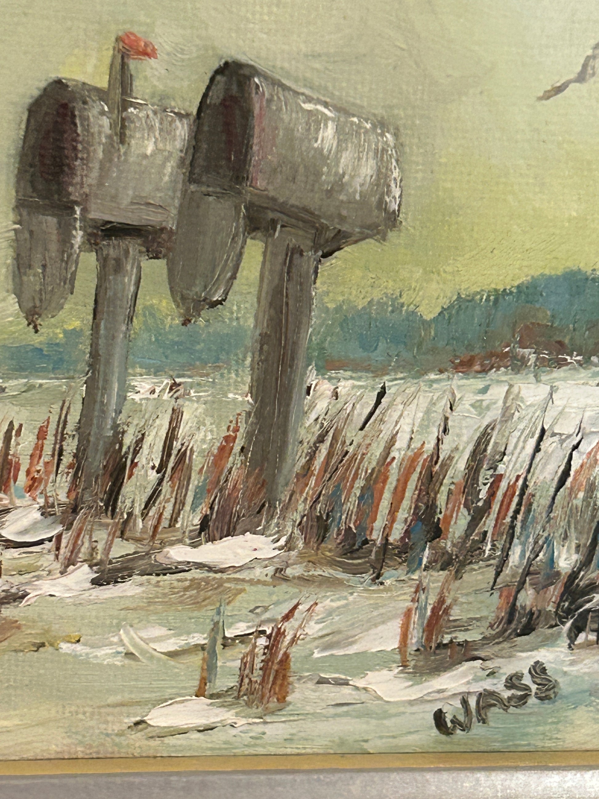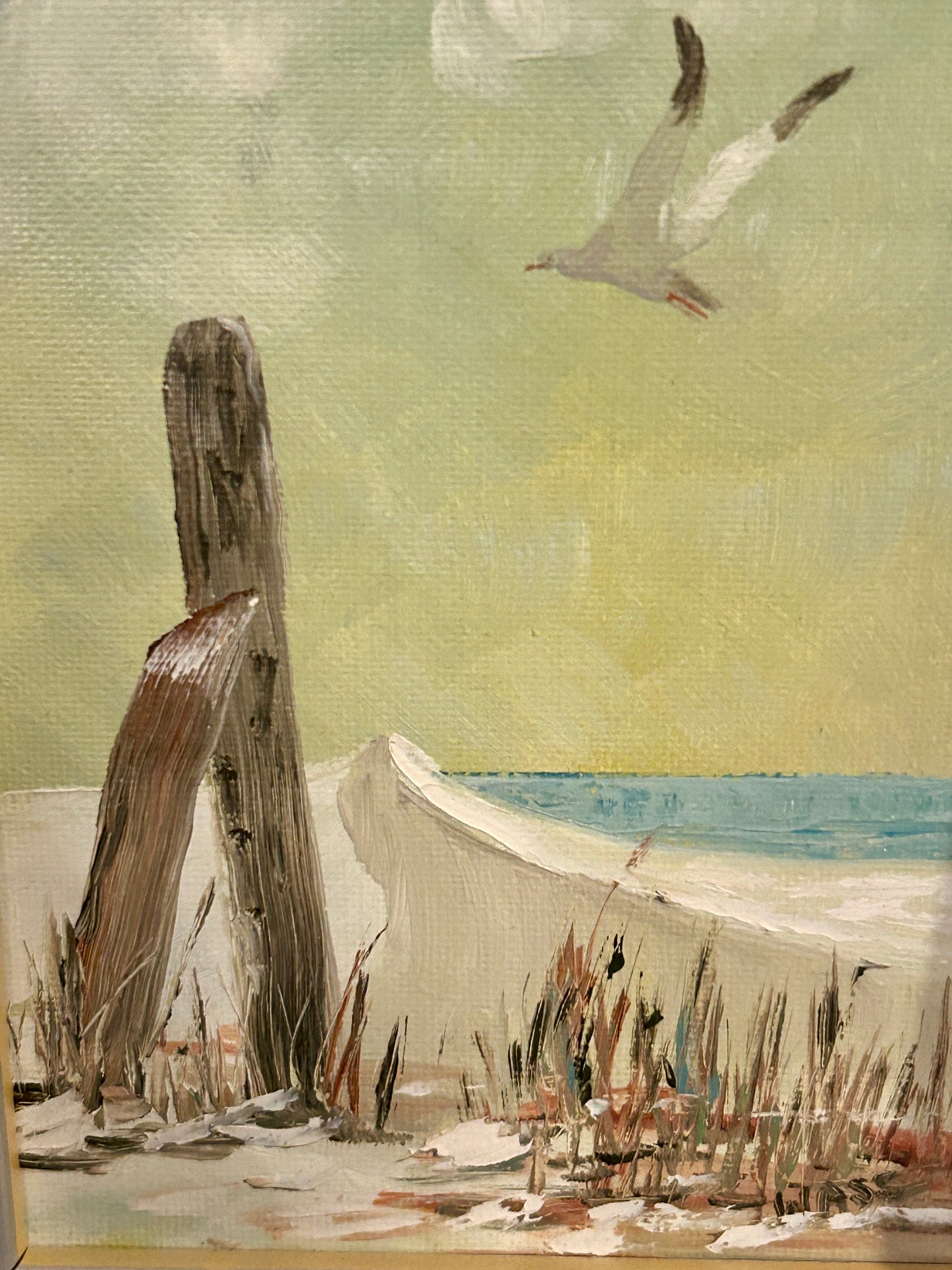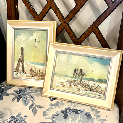 This pair of vintage seascape original oil paintings features custom gold wood frames and measure 8 x 6 each signed by artist
