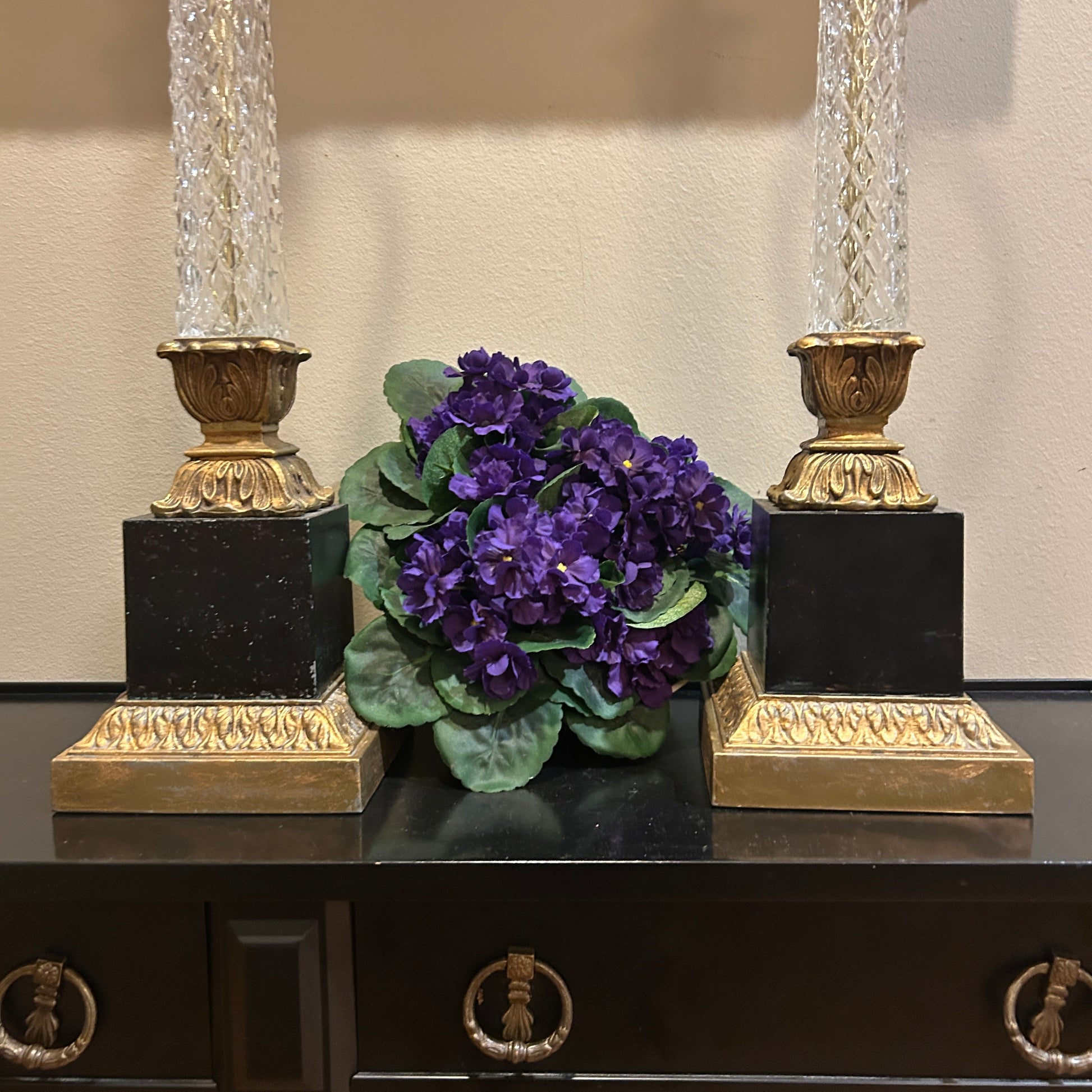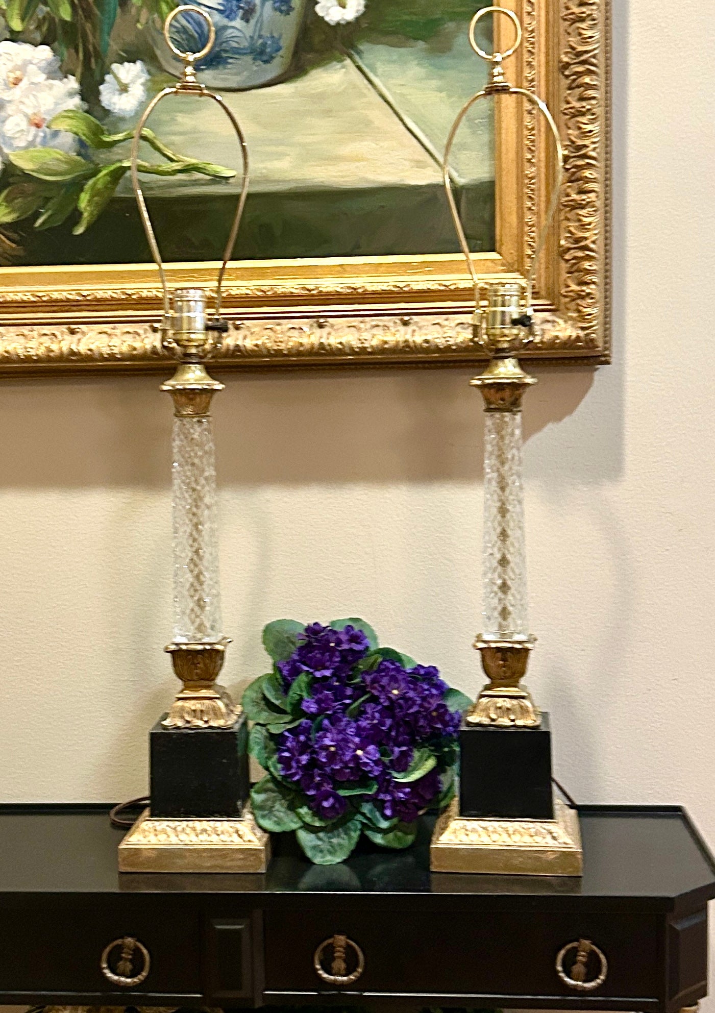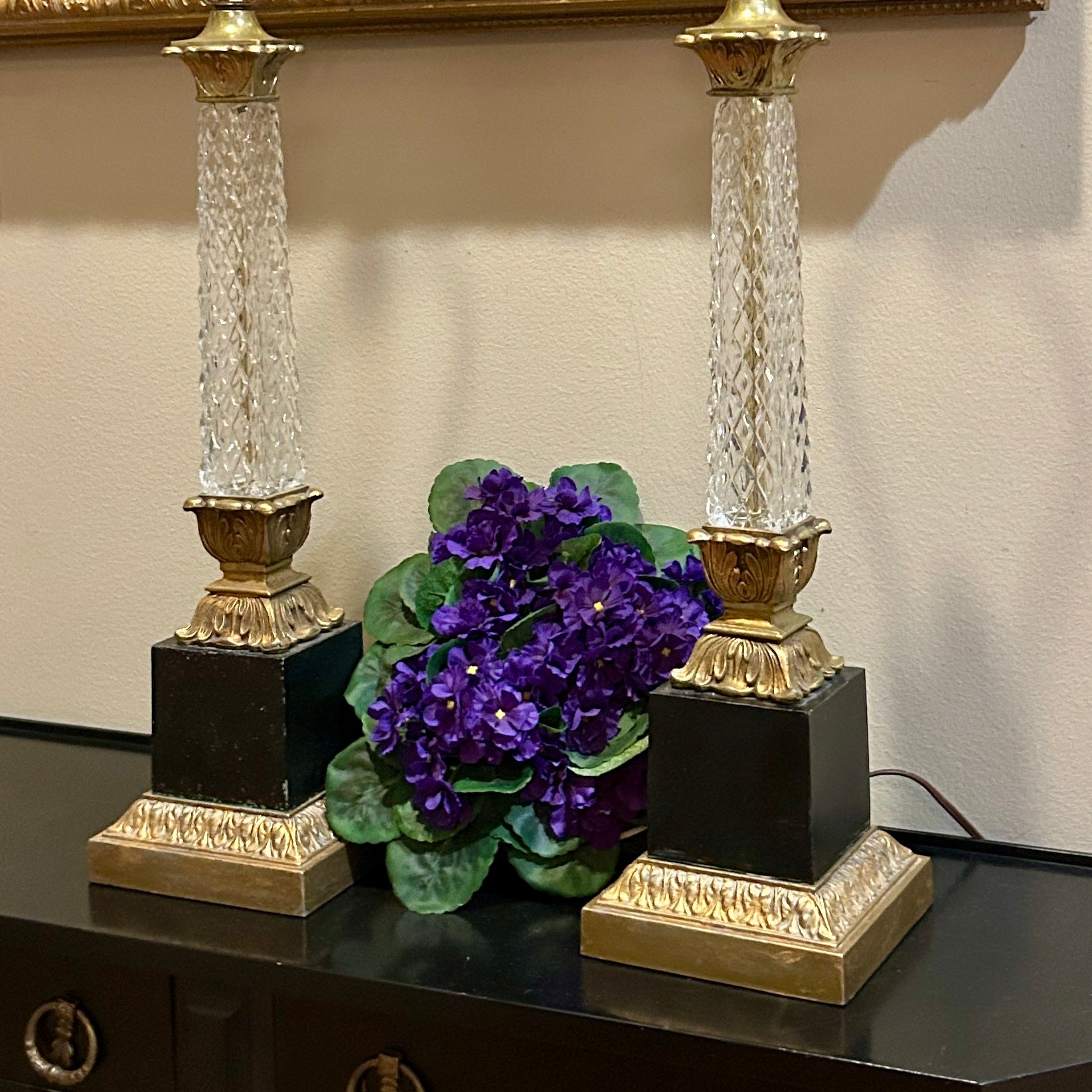 Rare Vintage Designer STIFFEL style aged in ebony Brass Heirloom Palm Lamps 30 in to finial