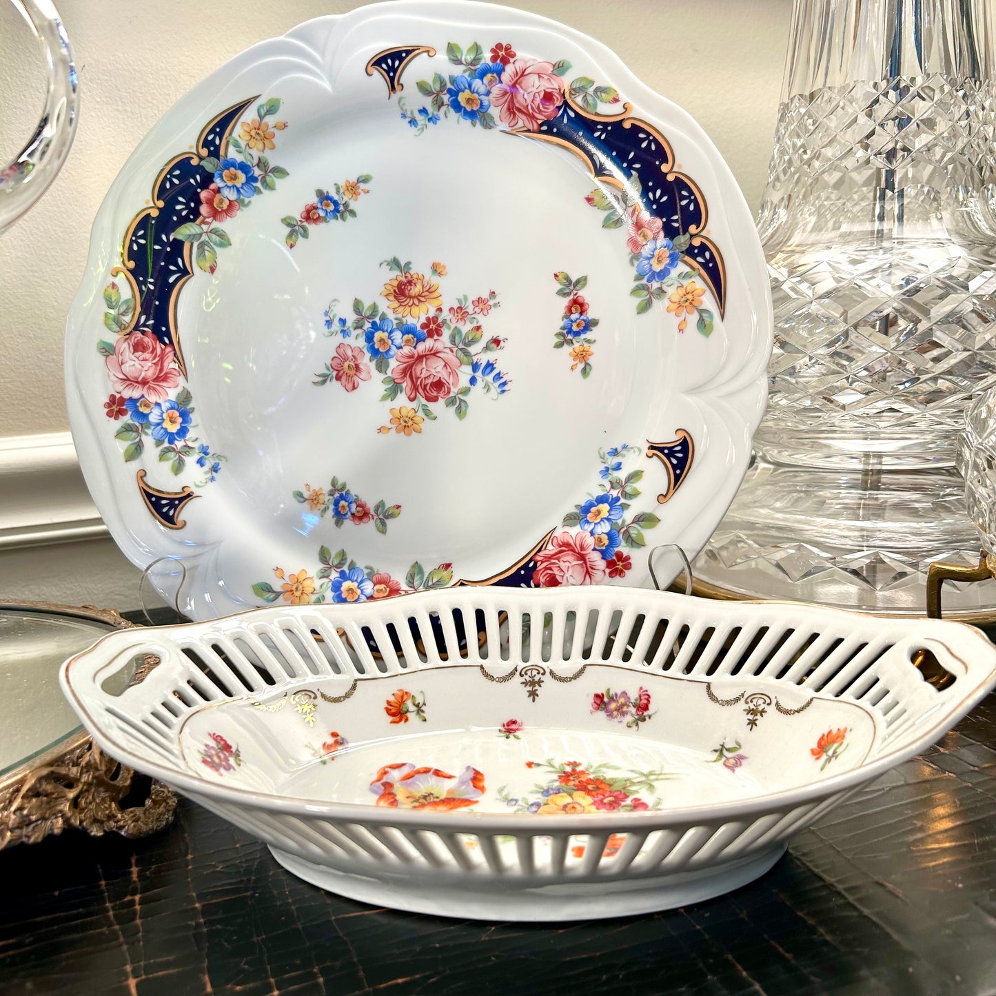 Stunning Designer Portzellian hand painted floral porcelain platter