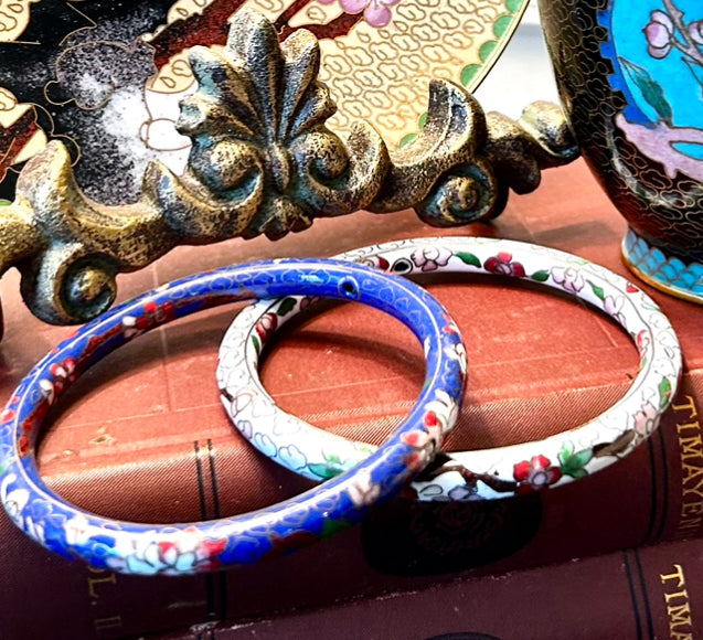 Set of 2 bangle bracelets vintage brass & enamel cloisonné