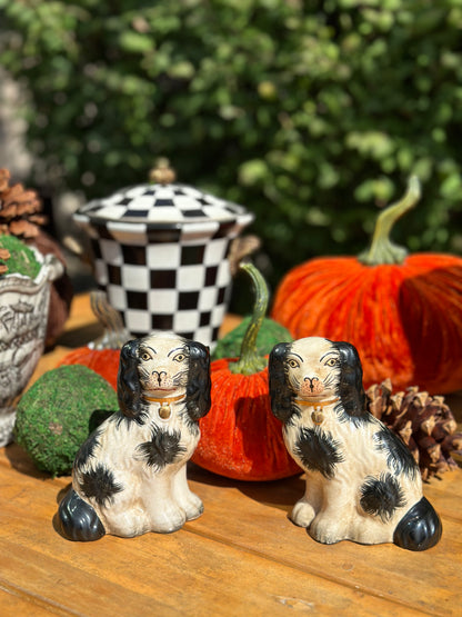 Danny’s Fine Porcelain: Black/White, 6” Tall Mantle Spaniel Dog Pair