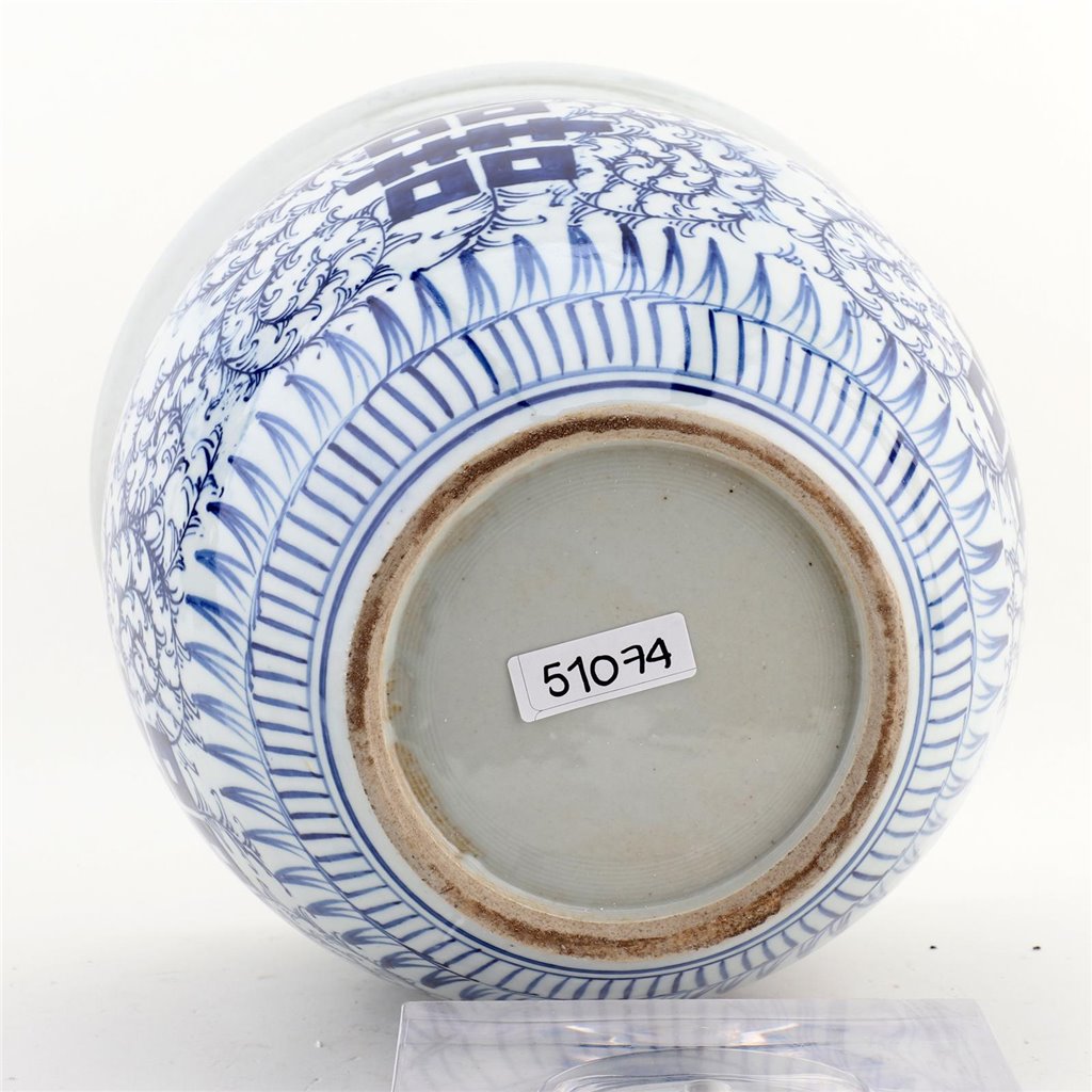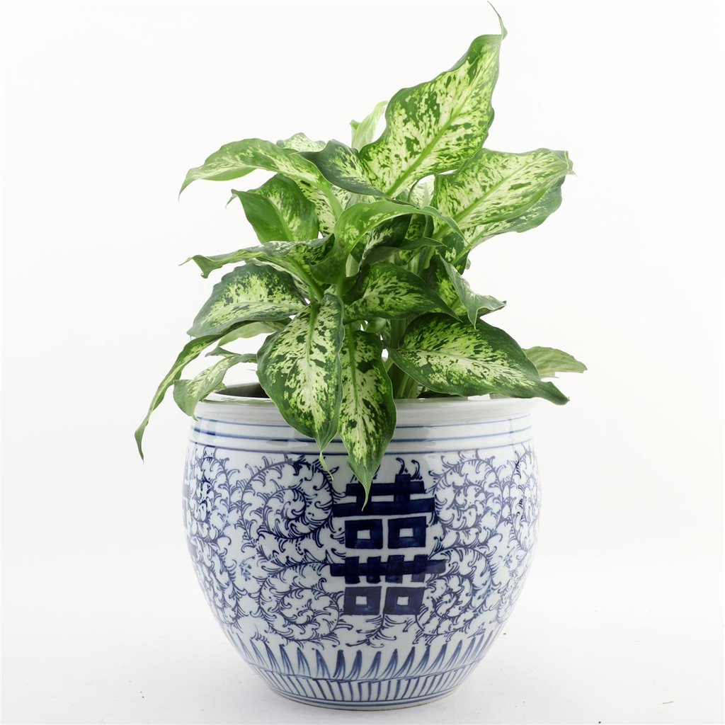 NEW - Blue & White Double Happiness Porcelain Planter, 8" Tall - Pristine! Measures: 10Lx10Wx8HTop opening: 8"D.