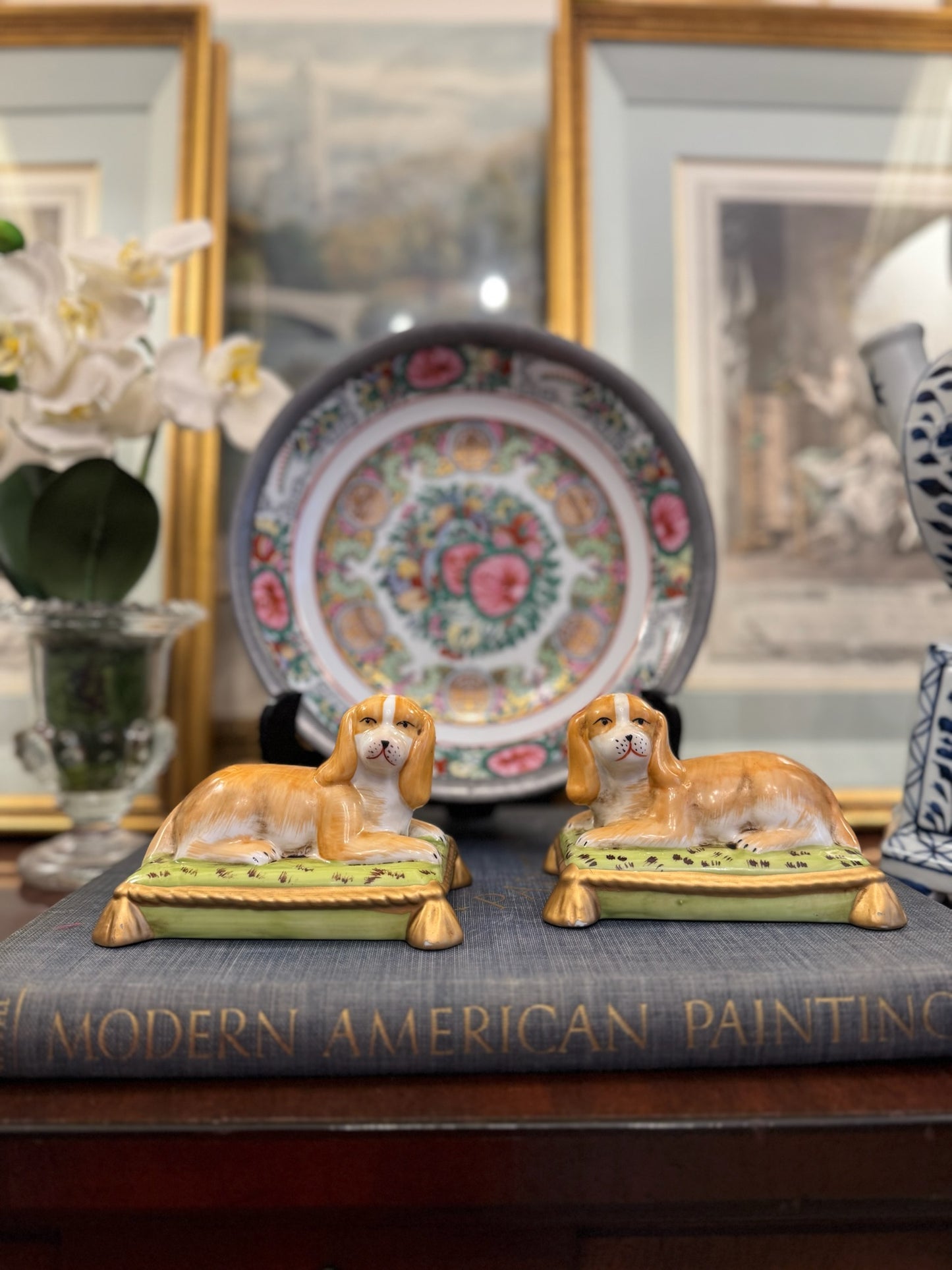 DANNY'S FINE PORCELAIN - 5x4x4 Spaniel Ceramic Bookends, Lime Gold Pillows