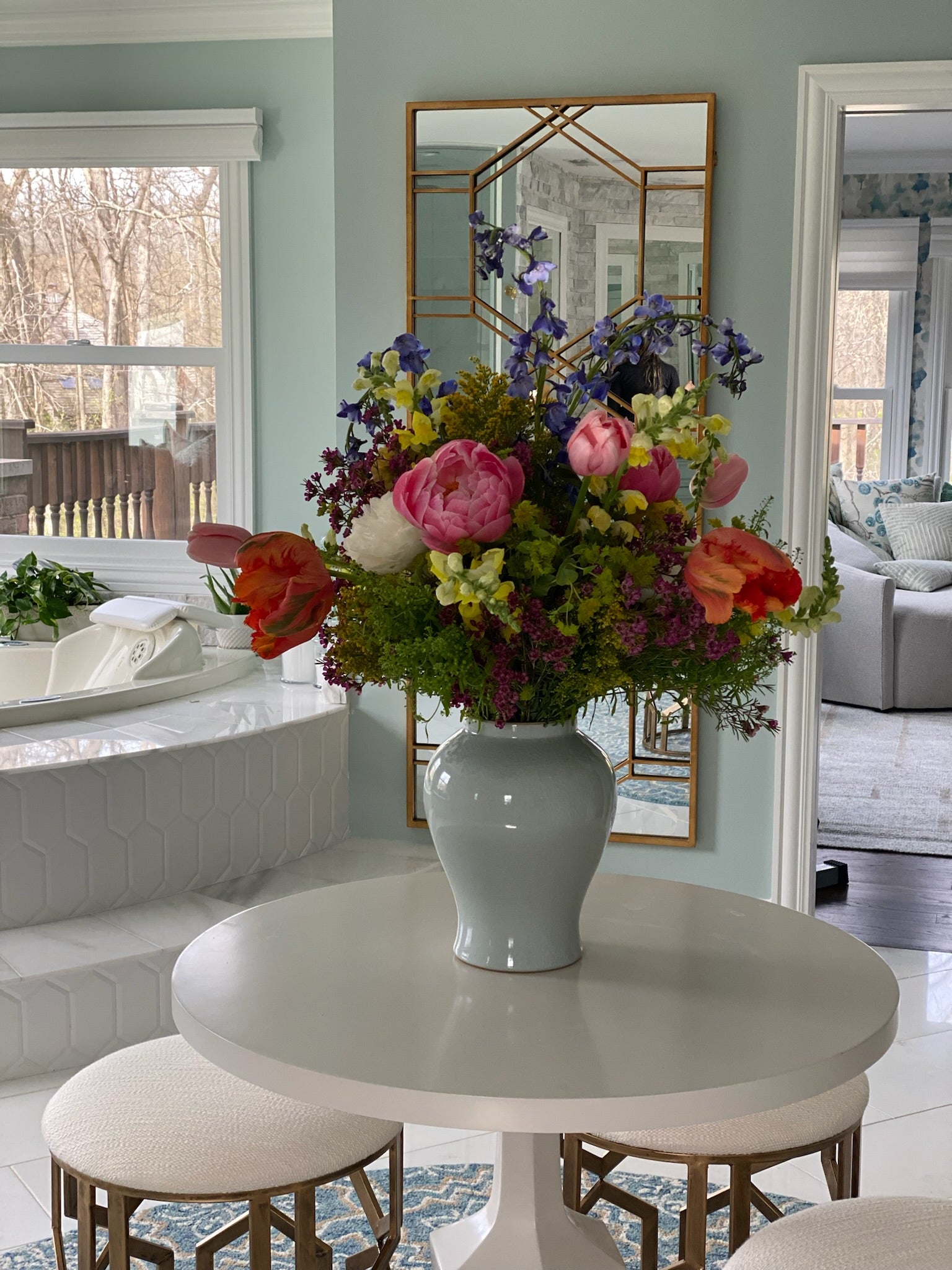 Elevate your home décor with timeless elegance. This sage green ginger jar from Danny’s Fine Porcelain stands an impressive 16 inches tall, making it a striking statement piece for mantels, consoles, or entryways.