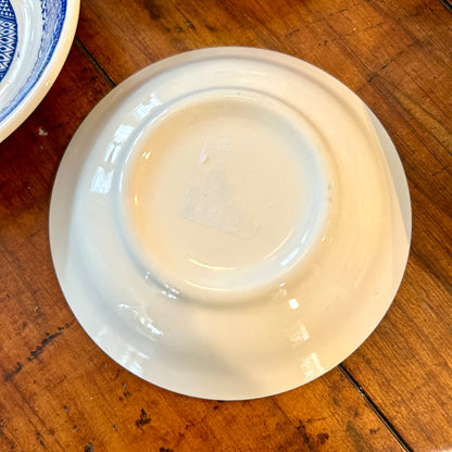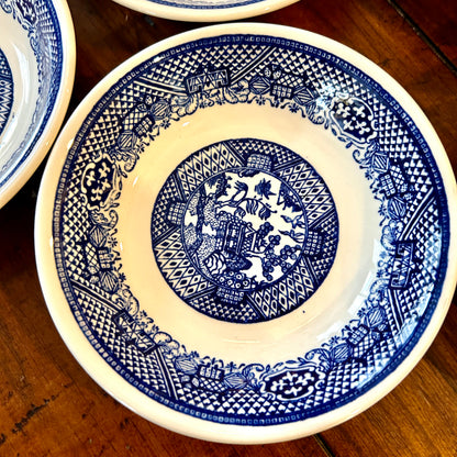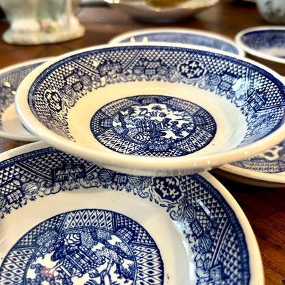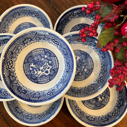 Set of eight vintage blue willow blue & white saucer bowls.