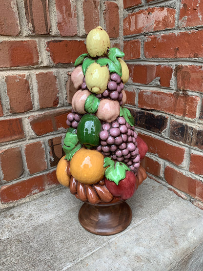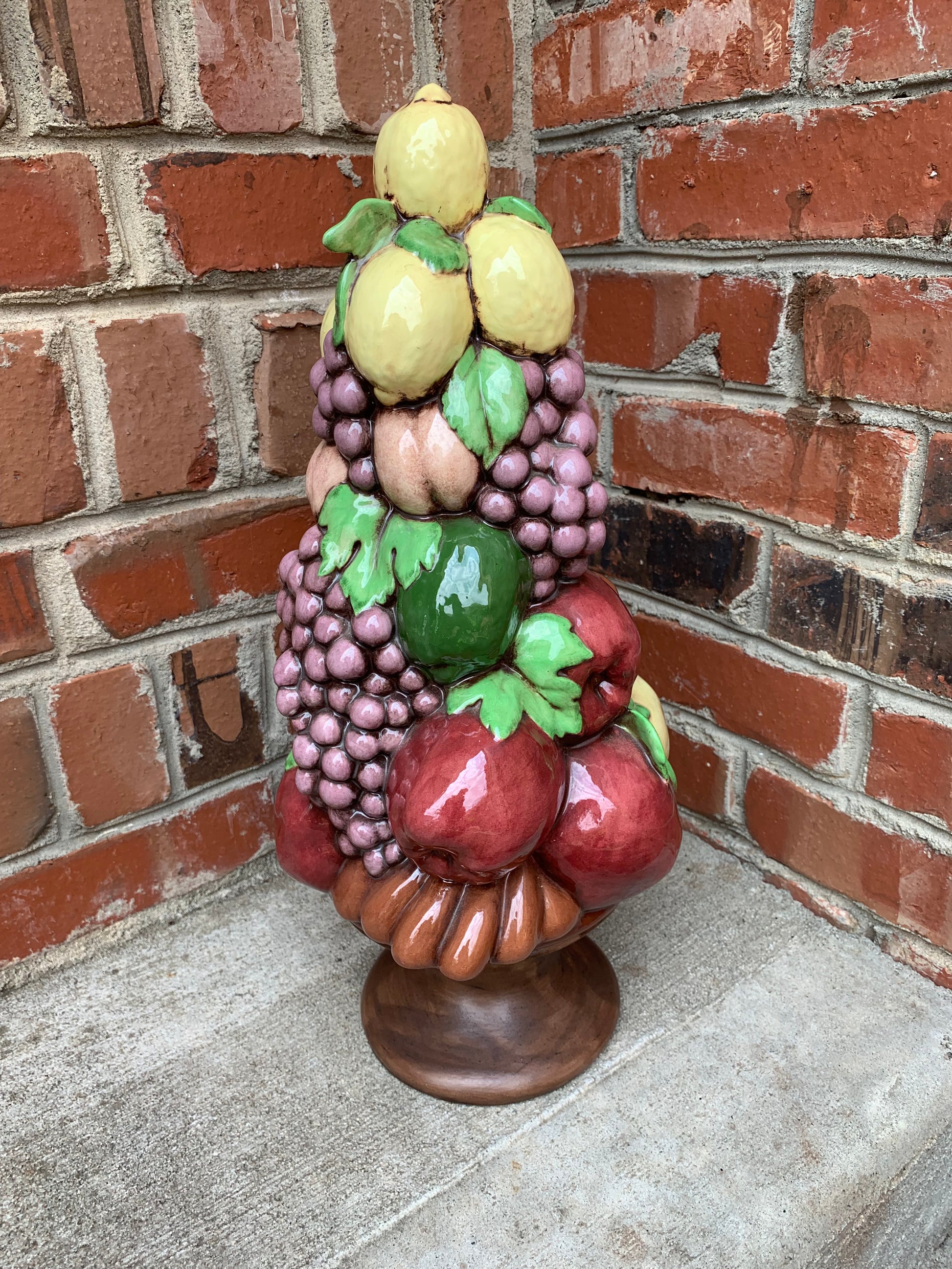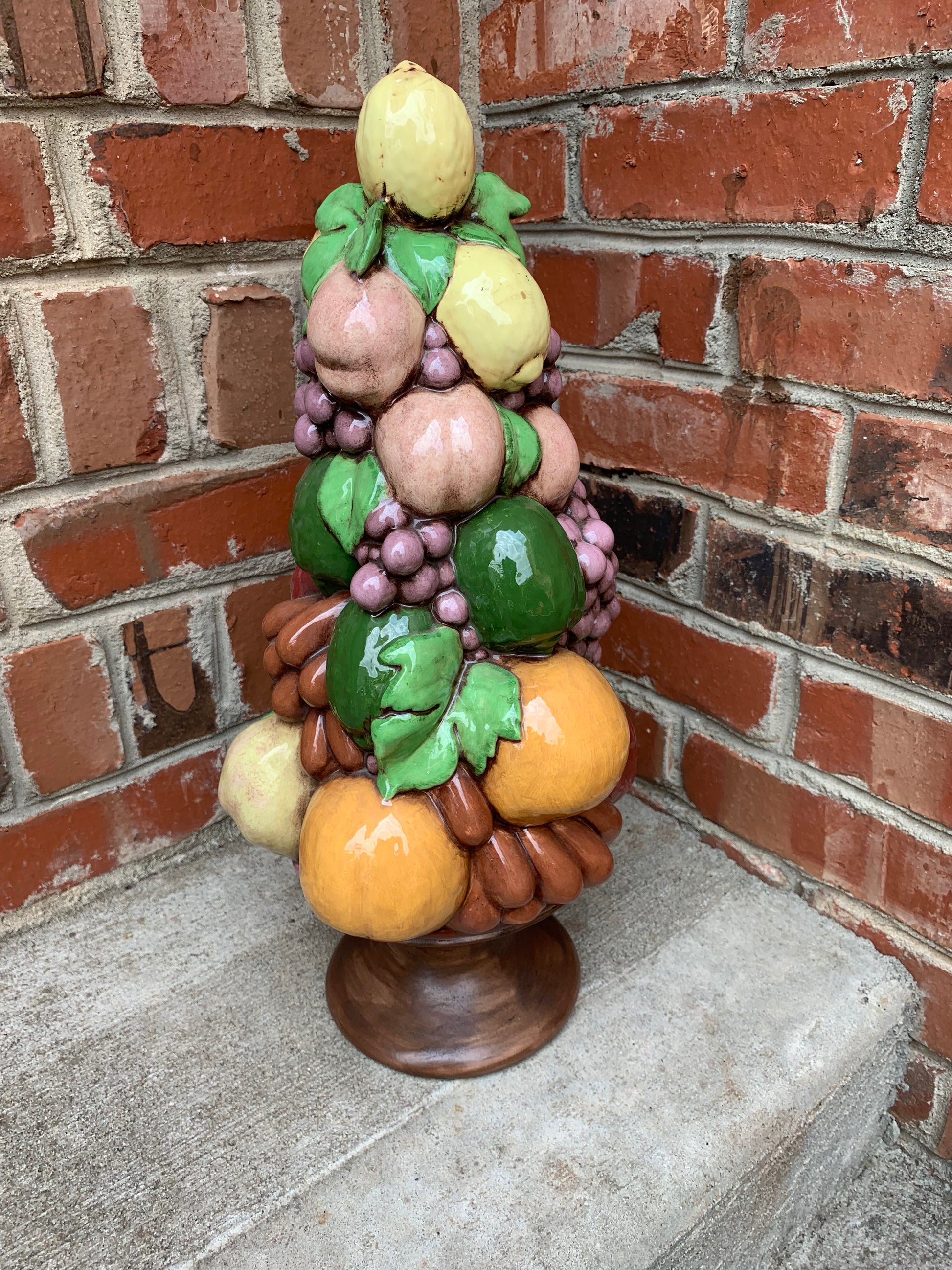 Stunning 17” fruit topiary! A statement piece for sure! Features beautiful coloring on a base! Only one very tiny chip on a leaf as shown.