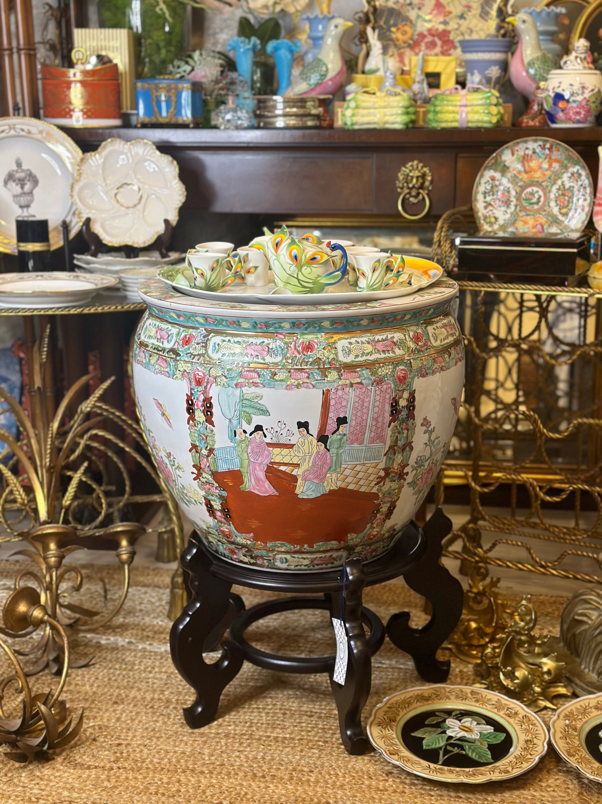 This XXLarge Famille pot is an absolute showstopper! Measuring 18.5”D and standing at a whopping 17” tall, it is sure to make a statement in your home. Not to mention, it is in perfect condition with no flaws. Don't miss out on this stunning piece!