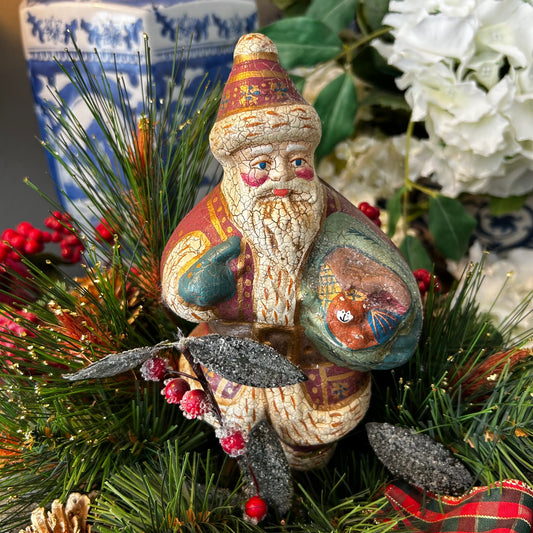 Massive Vintage Santa Christmas pine cone topiary centerpiece