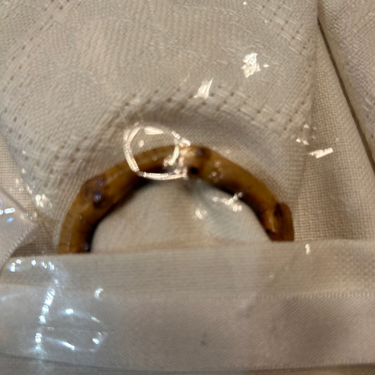 Set of 12 / 4 place settings bamboo napkin rings , napkins & Linens IVORY Placemats, 13x19 NEW VINTAGE in Box