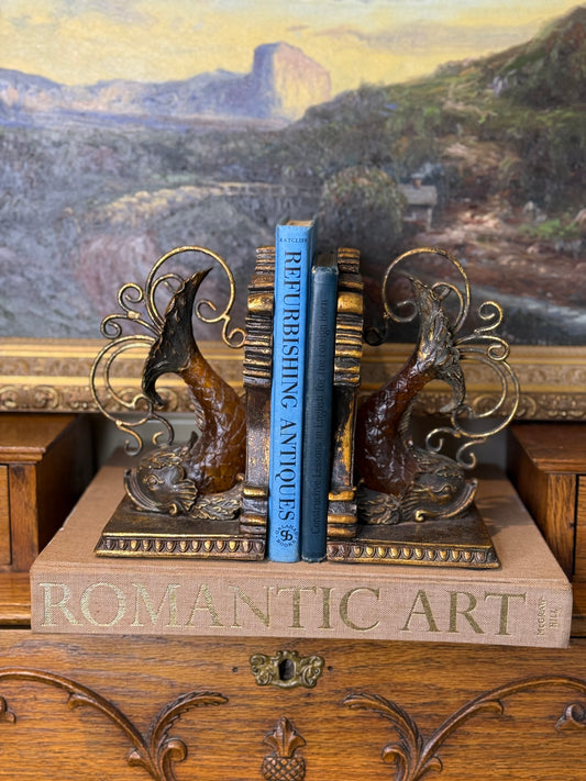 Vintage Gilded Dolphin/Koy Scroll Resin Bookends,