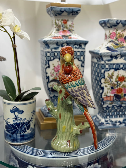 Danny's Fine Porcelain - 13.5" Tall, Famille Verte Porcelain Parrot on Tree Stump – New Chinese Export