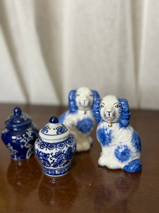 Danny's Fine Porcelain - Blue & White, 5.5" Tall Spaniel Dog Pair (2) New Reproductions