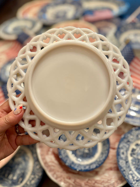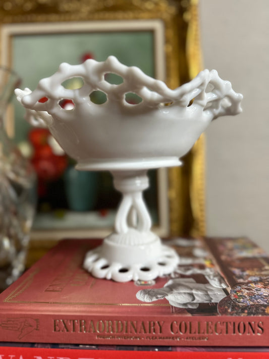 Vintage Milk Glass Footed Candy Dish