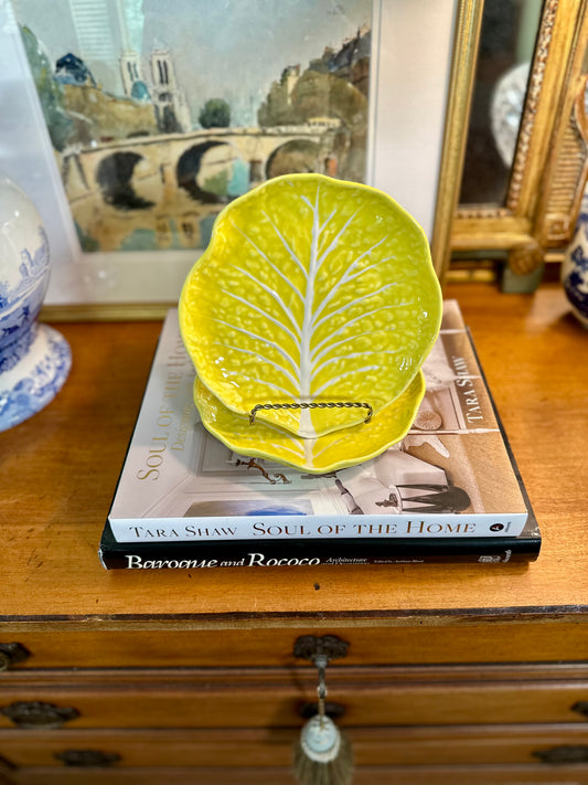 Beautiful Pair Yellow Cabbage Leaf Dessert Plates by Secla, Made in Portugal, 7.25"