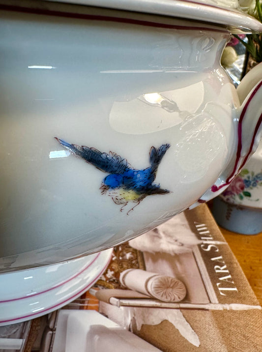 Gorgeous 19th Century Hand Painted Old Paris Porcelain Lidded Round Tureen Bowl, 13"