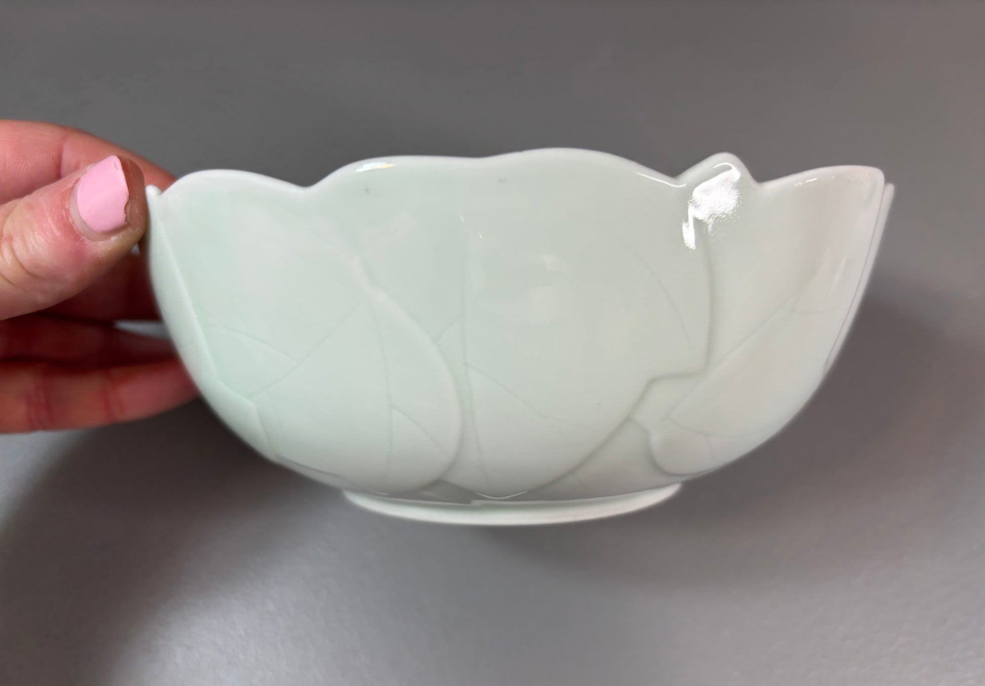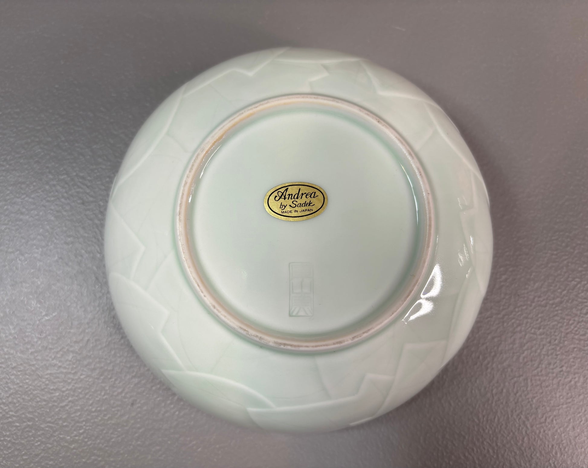 Andrea by Sadek celadon leaf bowl! Measures 6 3/4” x 2 1/4”.