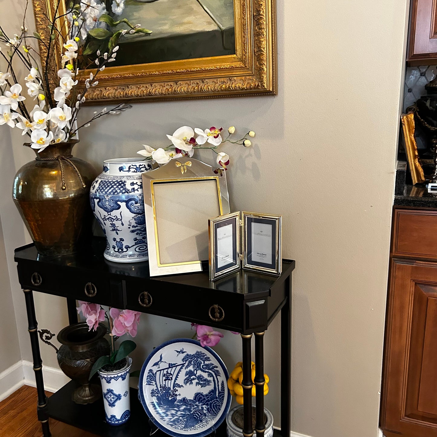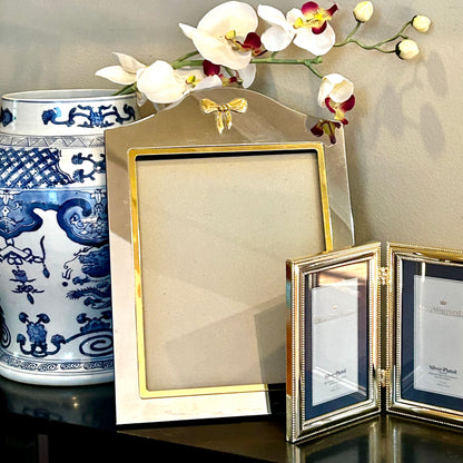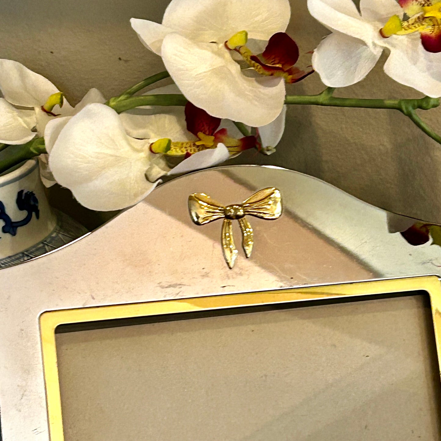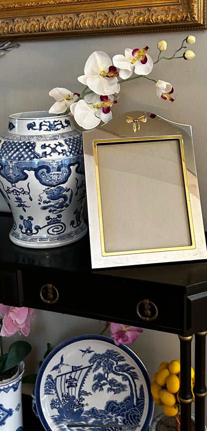 Massive Designer vintage brass & silver plate Bow photo frame