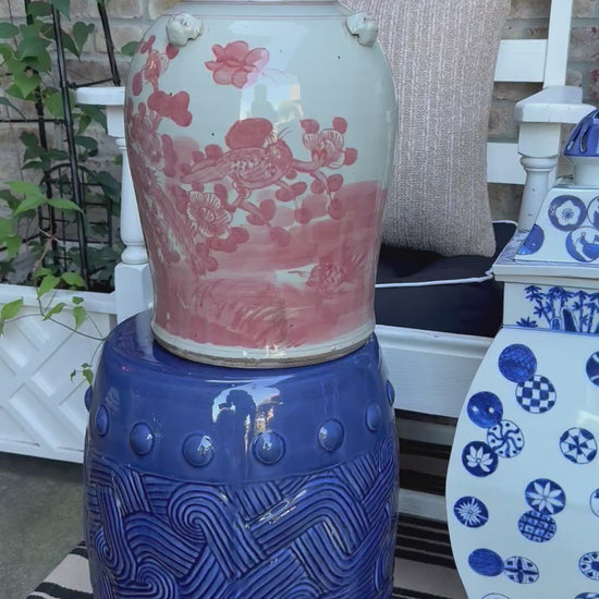 Danny’s Fine Porcelain: Red and White Porcelain Ginger Jar with Foo Dog Finial – 24” Tall