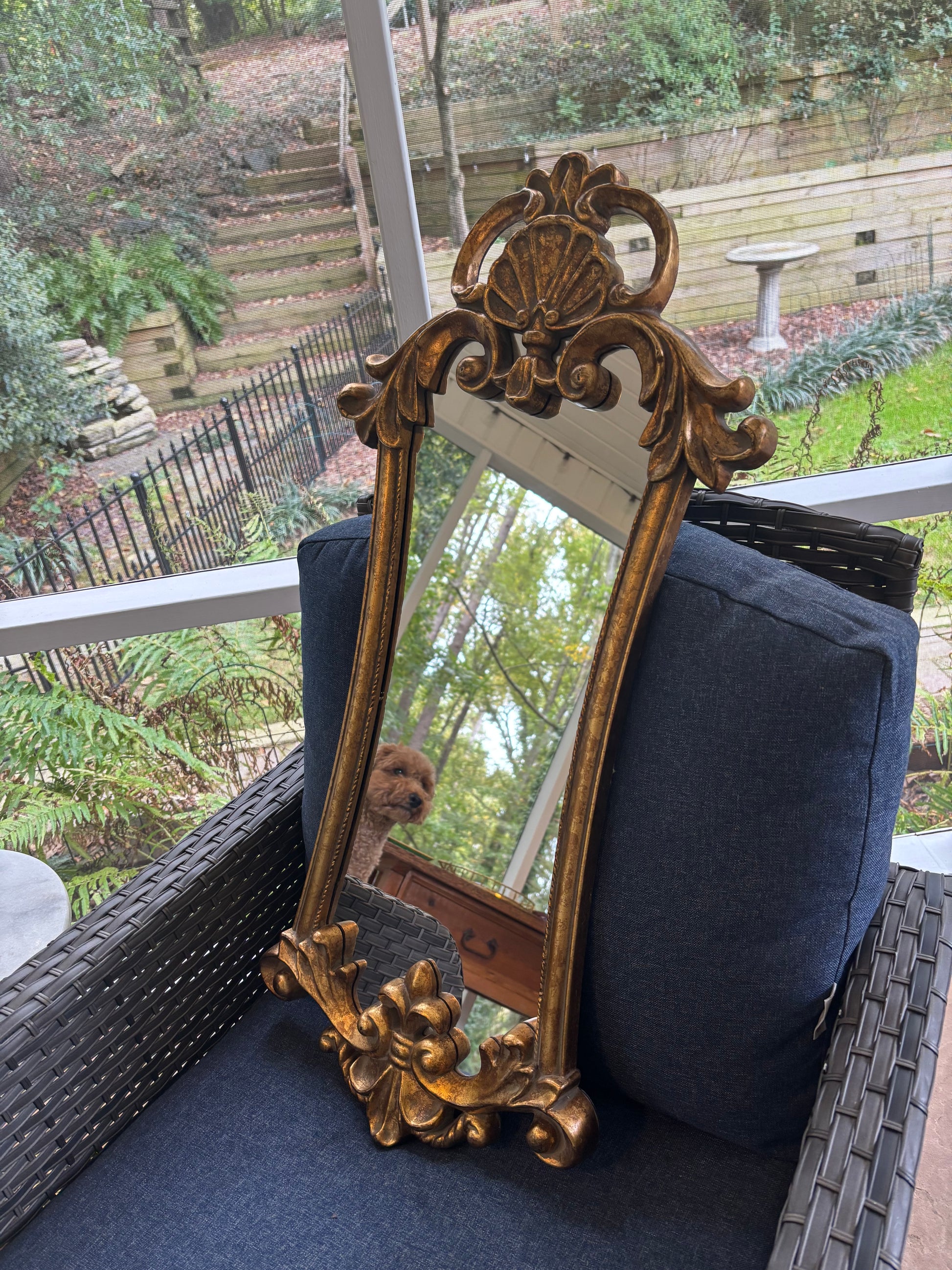 Gorgeous Baroque Style mirror! Measures 32” x 15.5”. Ready to be hung!