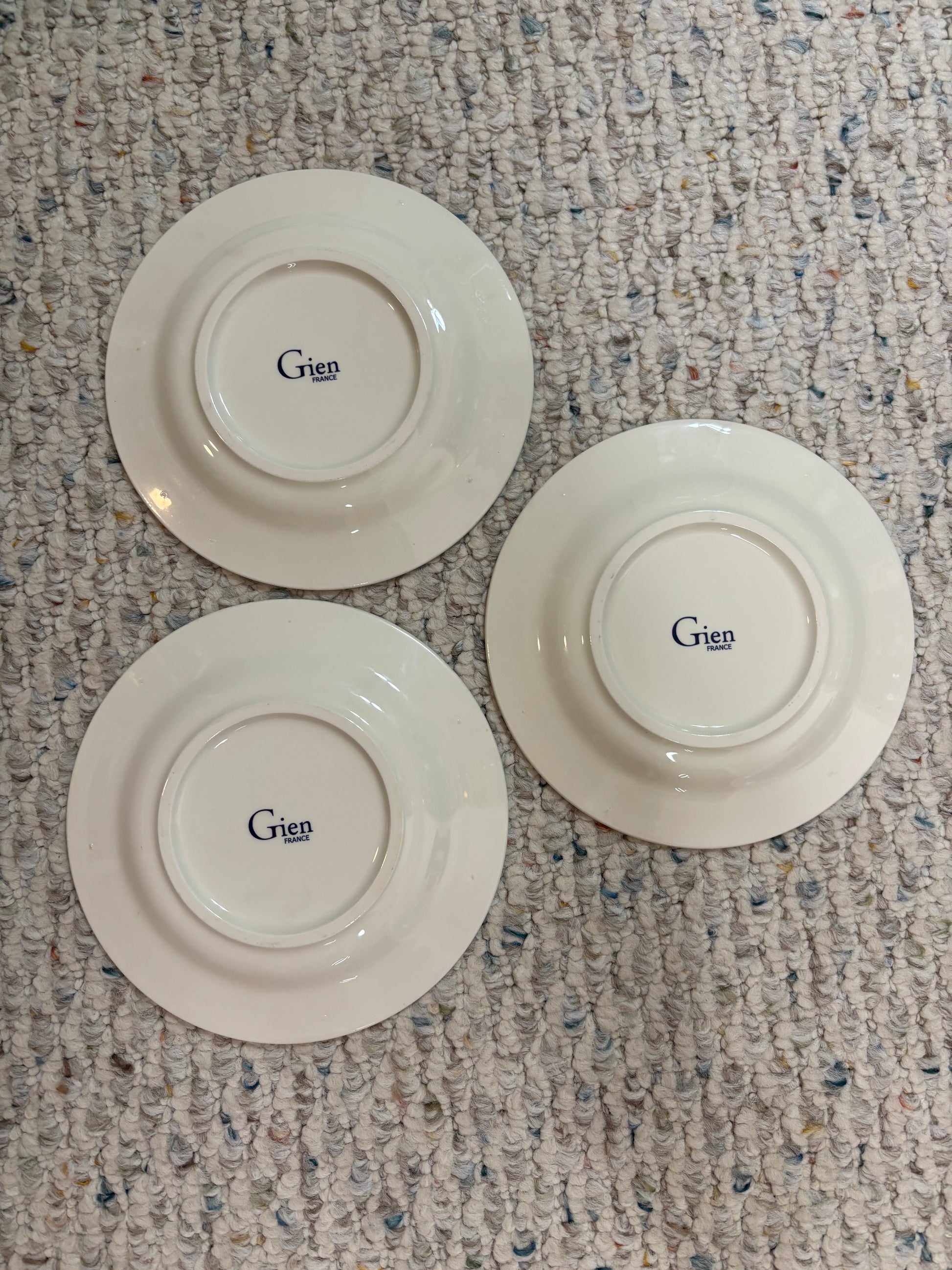 Le Houx by FAIENCERIE DE GIEN set of 3 plates! Measures 6 5/8 in diameter. Price is for the set of 3. In excellent condition!