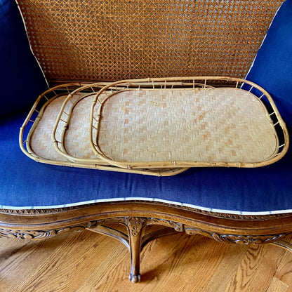 Vintage bamboo woven trays, 19 x 13 x 1.5 - Pristine!