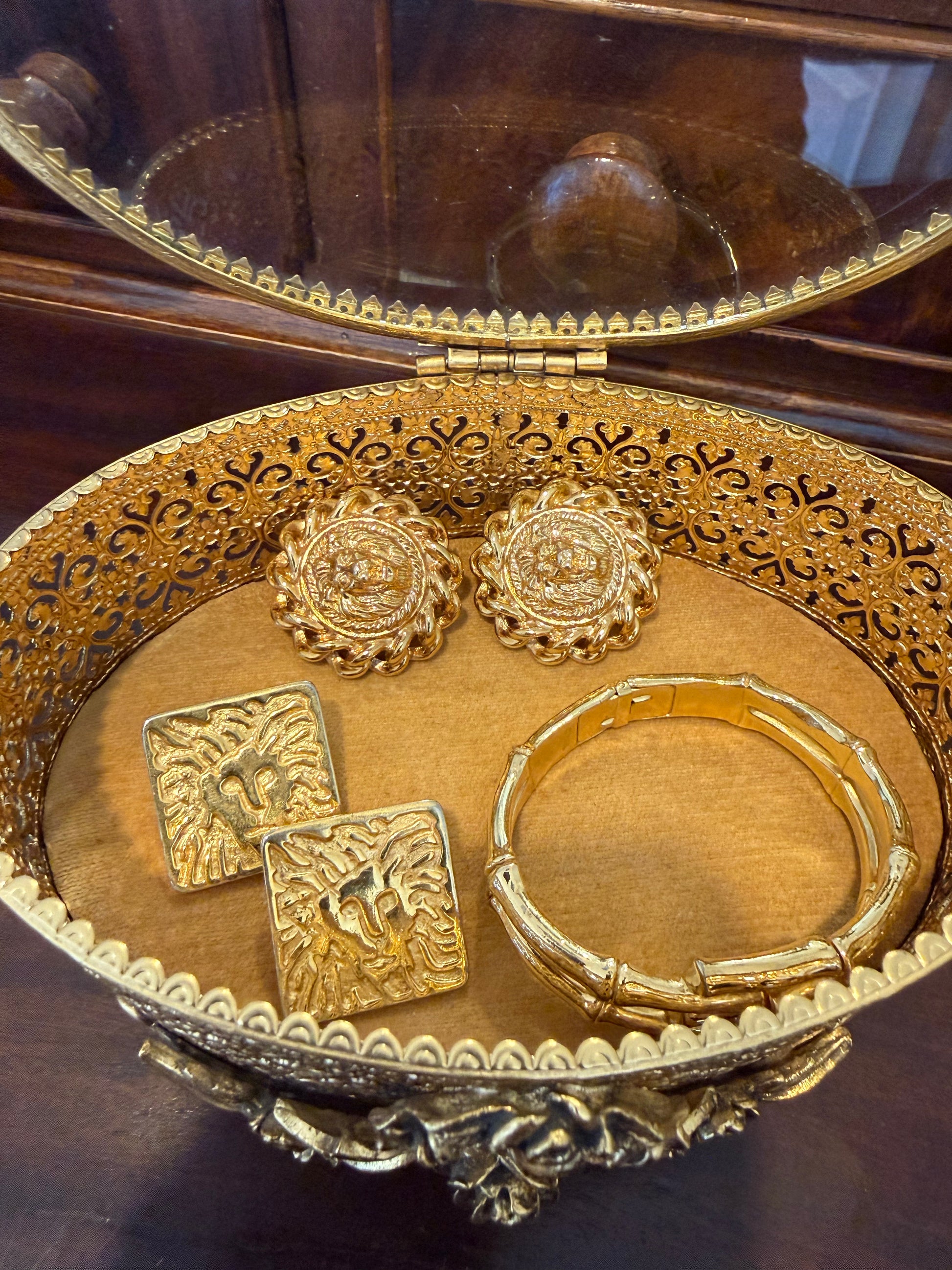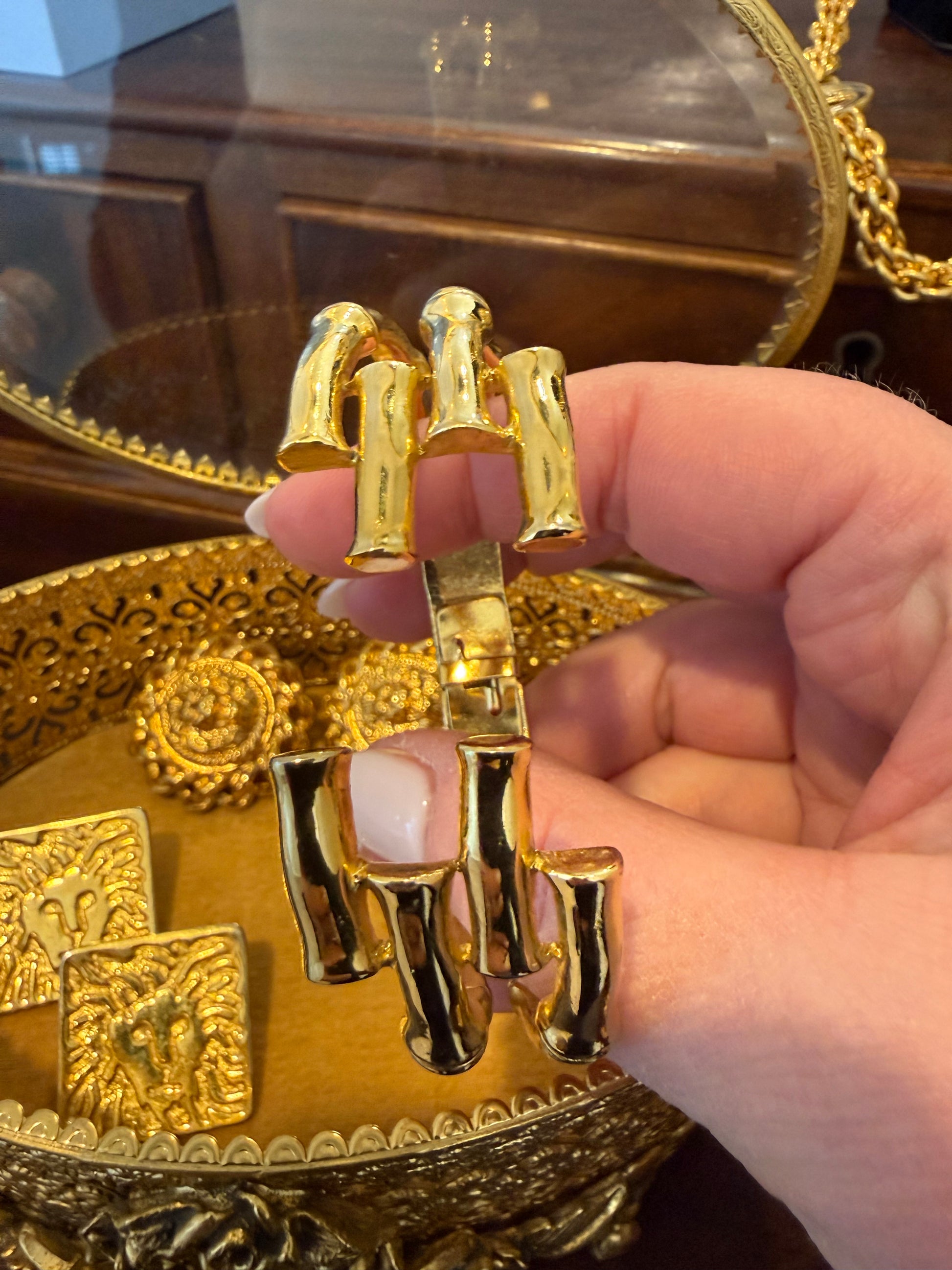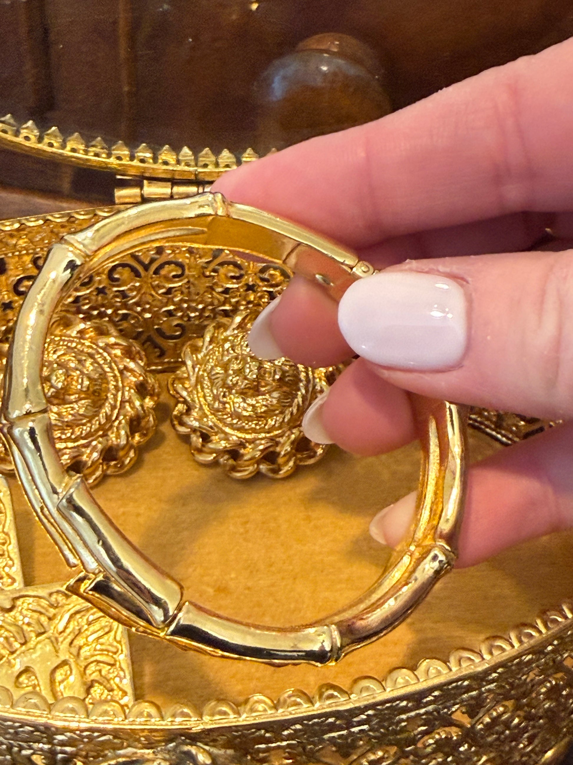 Vintage Crown Trifari 6.5” Gold Plated Bamboo Hinged Bangle Bracelet
