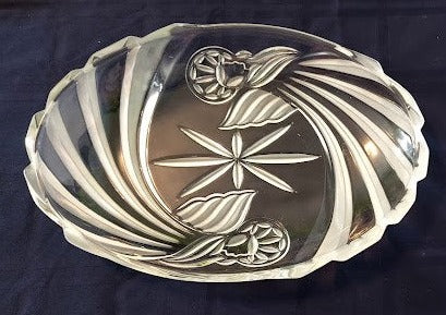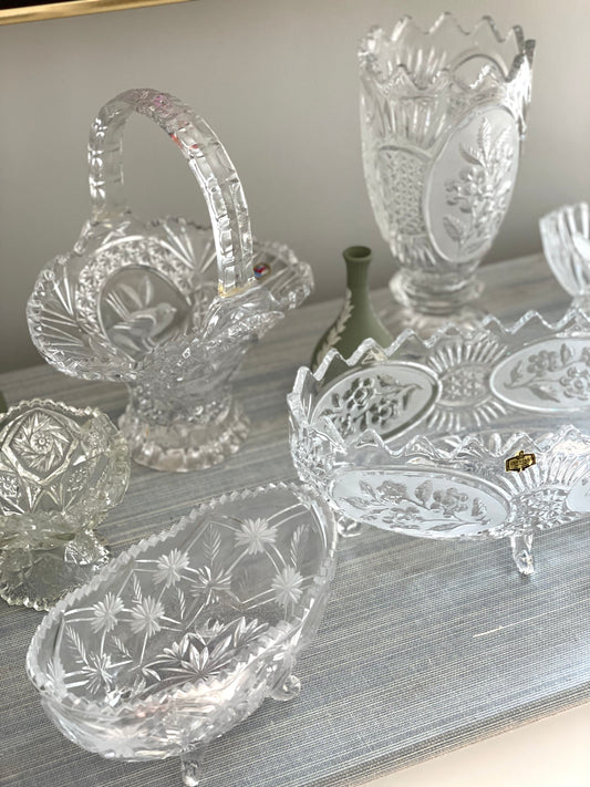 Vintage Lead Crystal Frosted Footed Oval Bowl