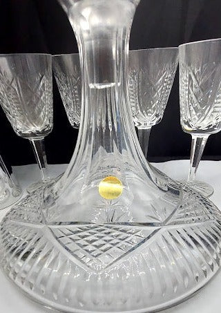 Tyrone Crystal Vintage Ship Decanter with 4 Goblets