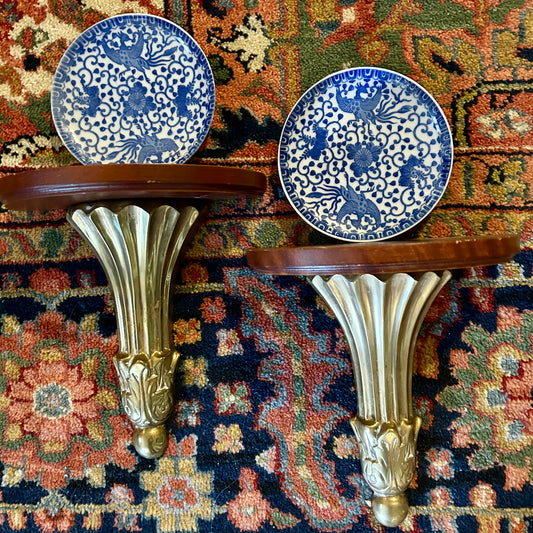 Sets of 3 vintage Chinoiserie blue and white carpet balls in