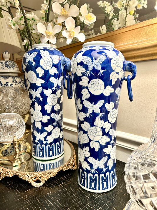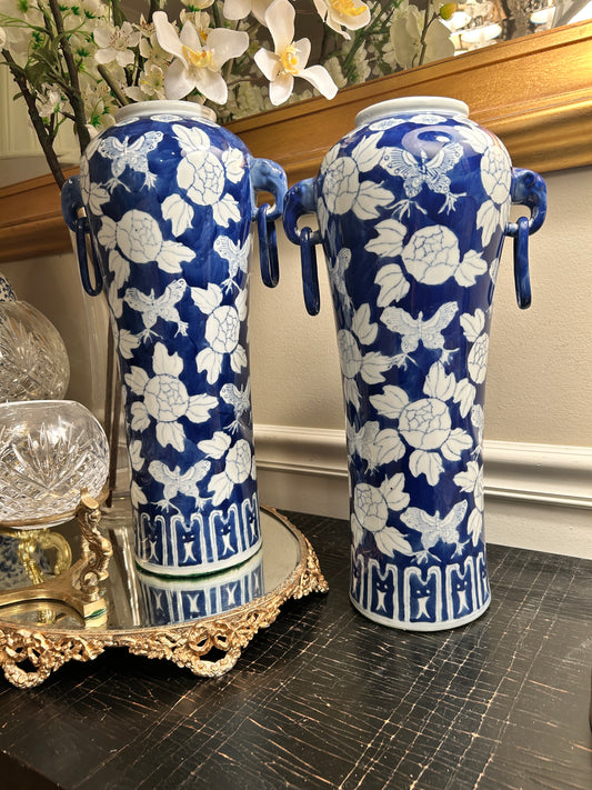 Fabulous vintage chinoiserie bird blue and white lamp.