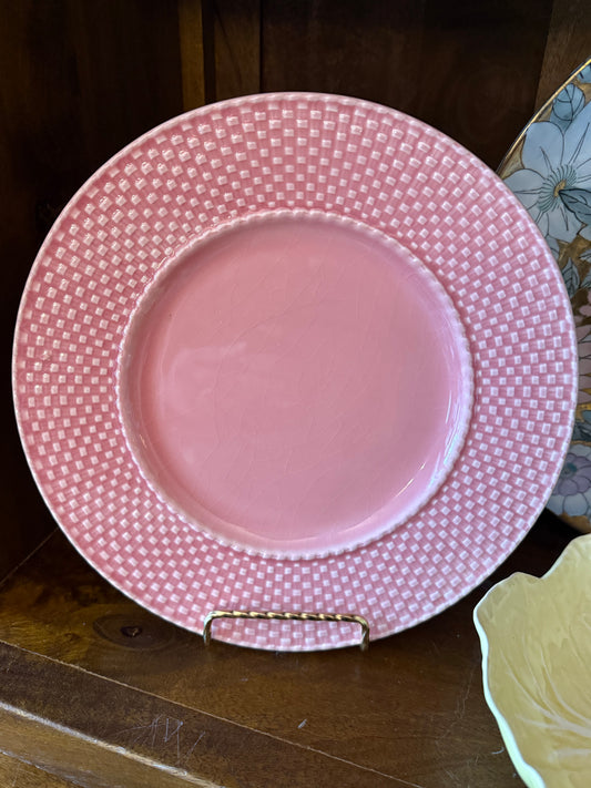 Vintage Pair of Pink & Aqua Bordallo Pinhiero 10” Dinner Plates