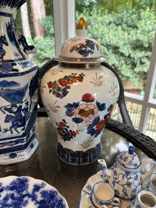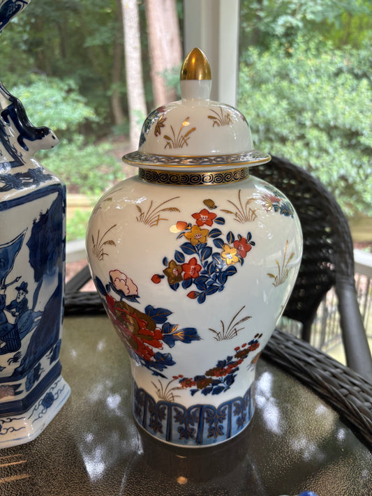 Chinoiserie floral lidded ginger jar with bird!