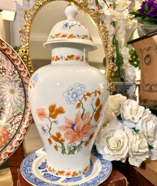 Statuesque 14 in Italian designer ANCAP Vintage Hand Painted IMARI Ginger Jar With Lid