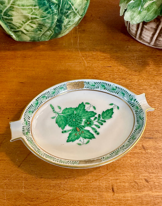 Vintage Herend Green Chinese Bouquet Oval Ashtray Trinket Dish, circa 1960-1970