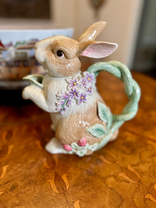 Adorable Fitz & Floyd “Botanical Bunny” Tea Service — Teapot, Lidded Sugar with Spoon & Creamer