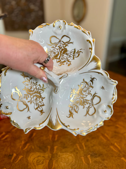 Vintage French Porcelaines de Couleuvre Limoges Three-Section Handled Tray
