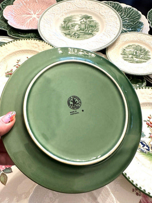 Vintage Bordallo Pinheiro Green Bunny Plates, Pair – 8.25”
