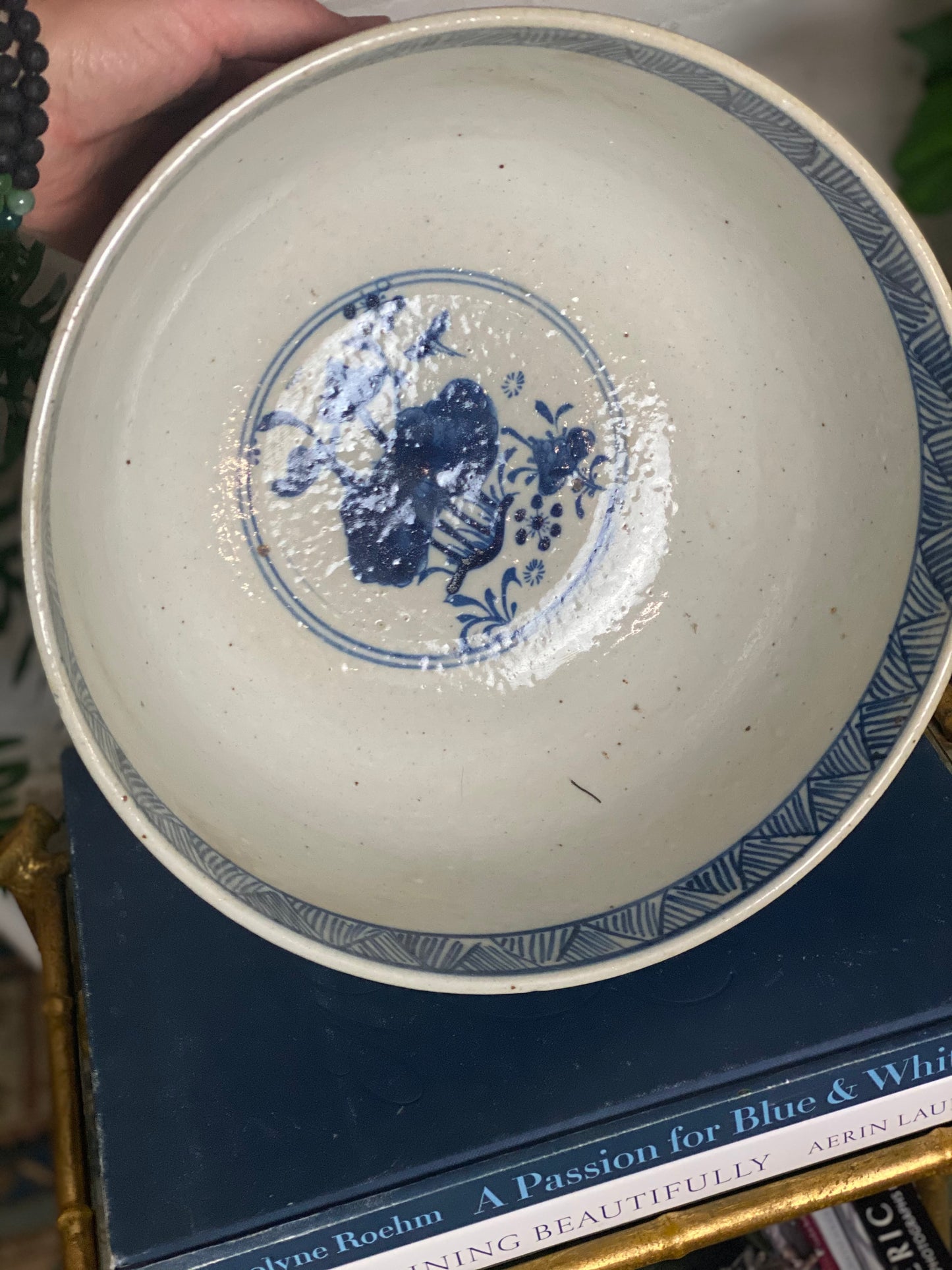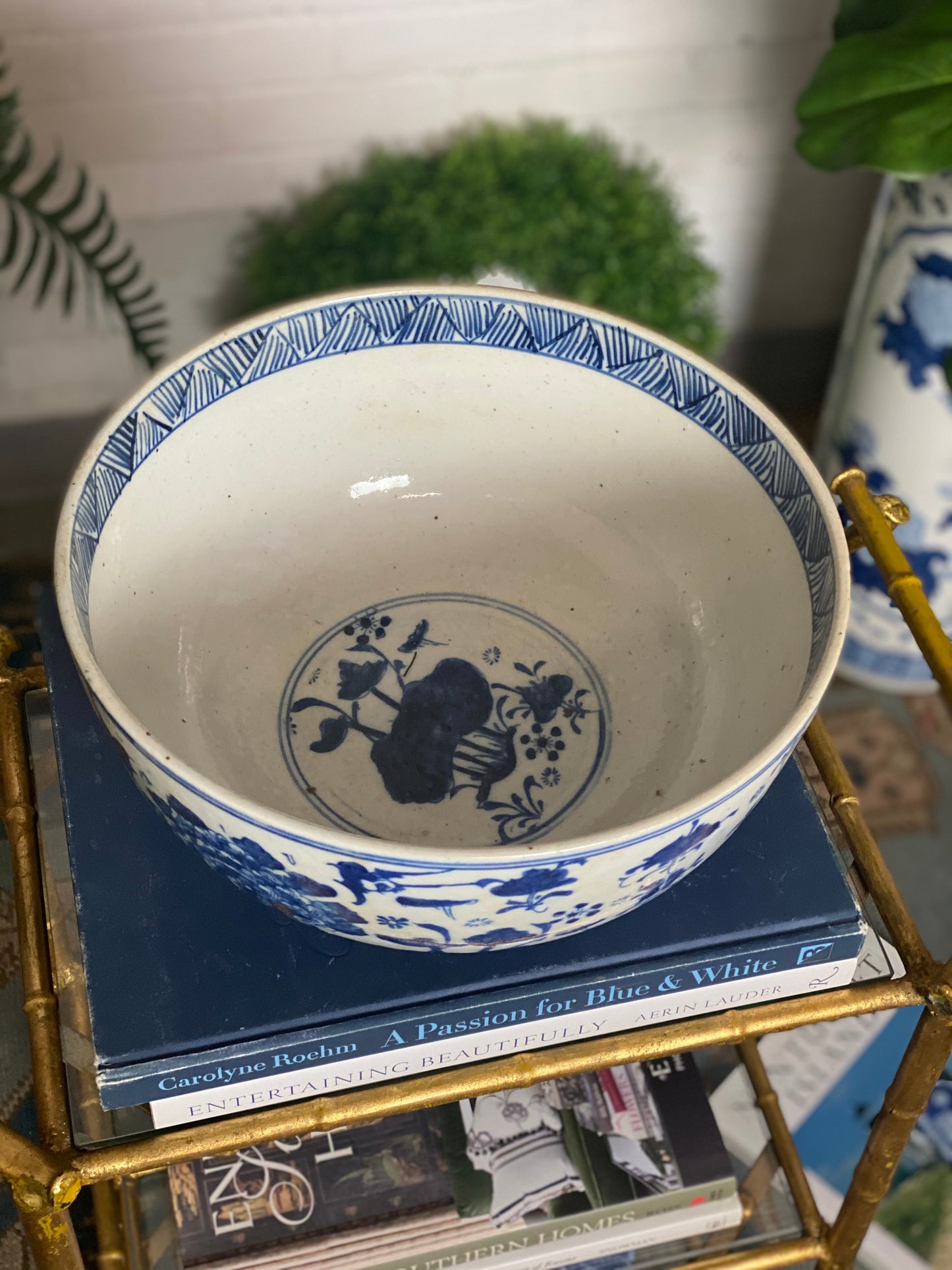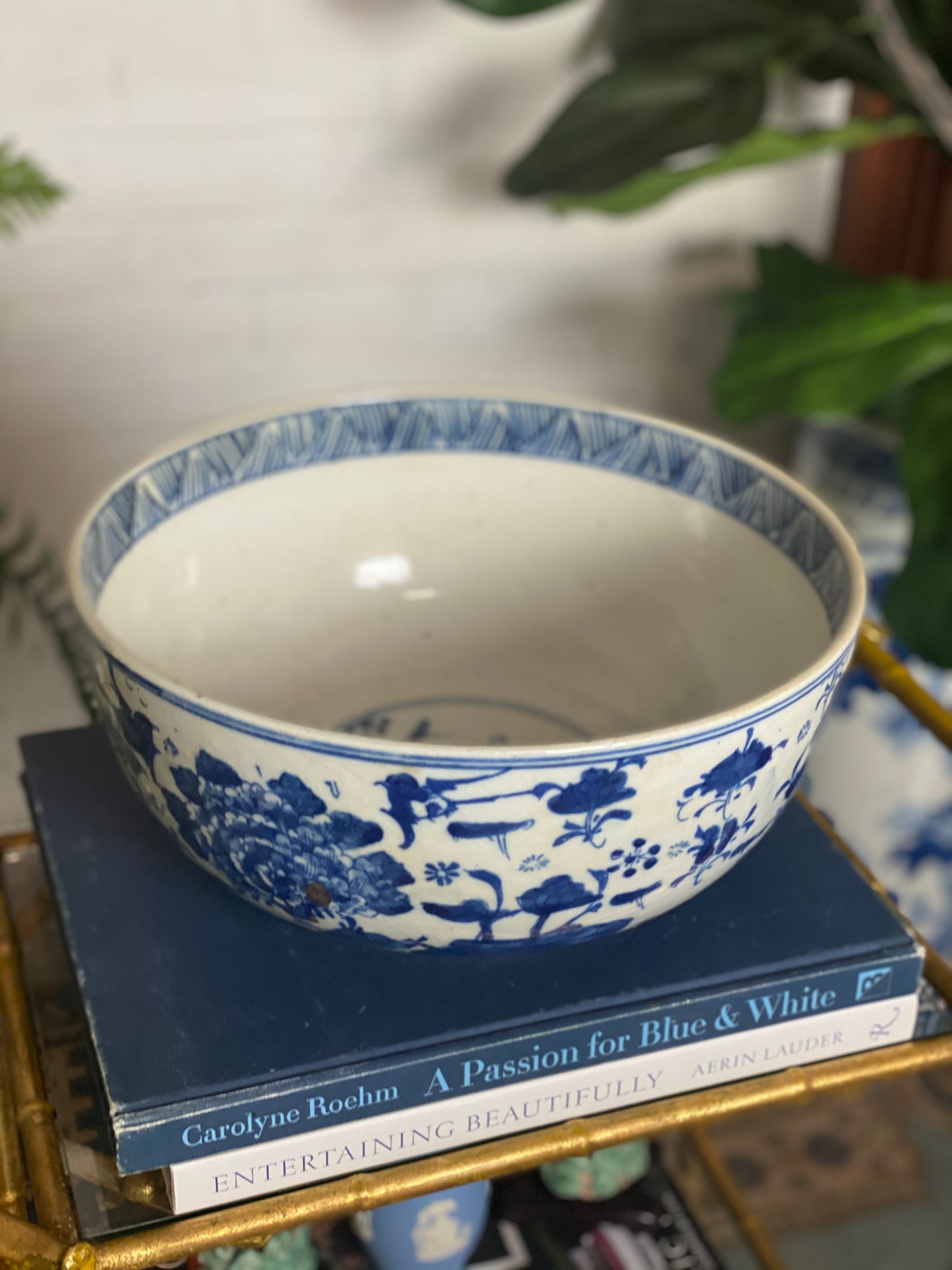 14W X 6” Tall - Hand painted FLORAL - BLUE AND WHITE CLASSIC Bowl