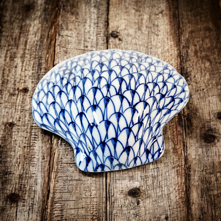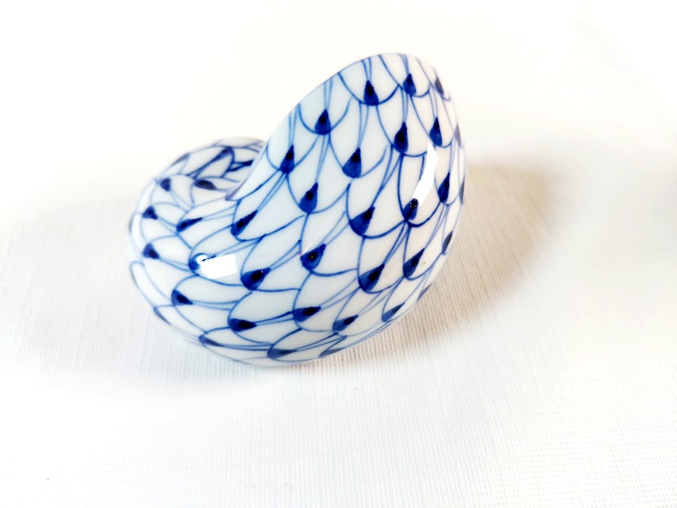 This Andrea by Sadek set of four hand-painted sea life figurines features striking blue and white fishnet design. Each piece is in perfect condition, making it an ideal addition to any nautical collection. Display these beautifully crafted figurines to showcase your appreciation for coastal elegance and fine decorative art. All are hand painted.