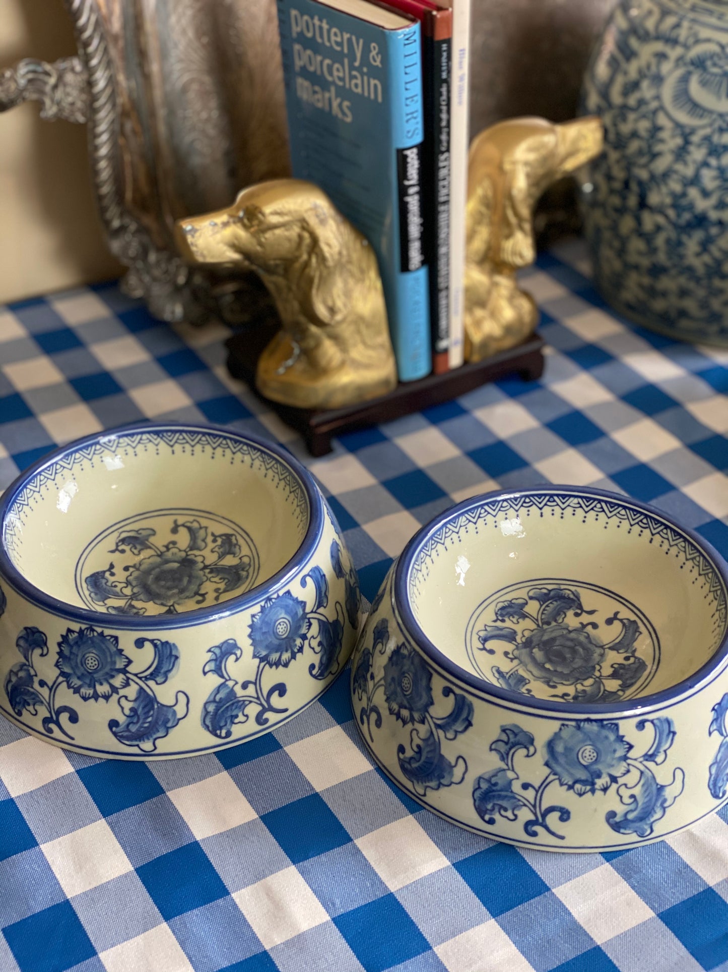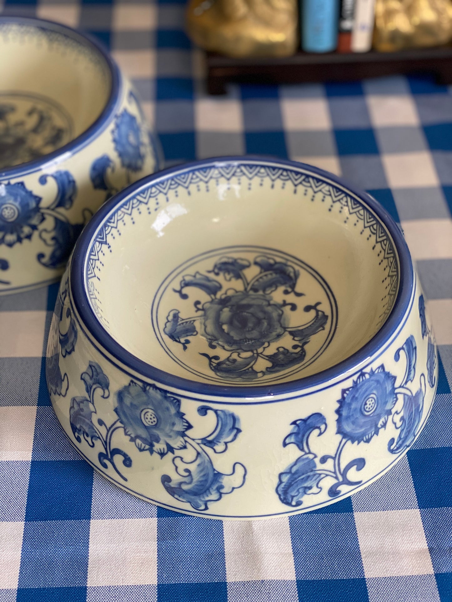 Blue & White Small Dog/Cat “No Tip” Bowl, Dimension: 7x7x2.5