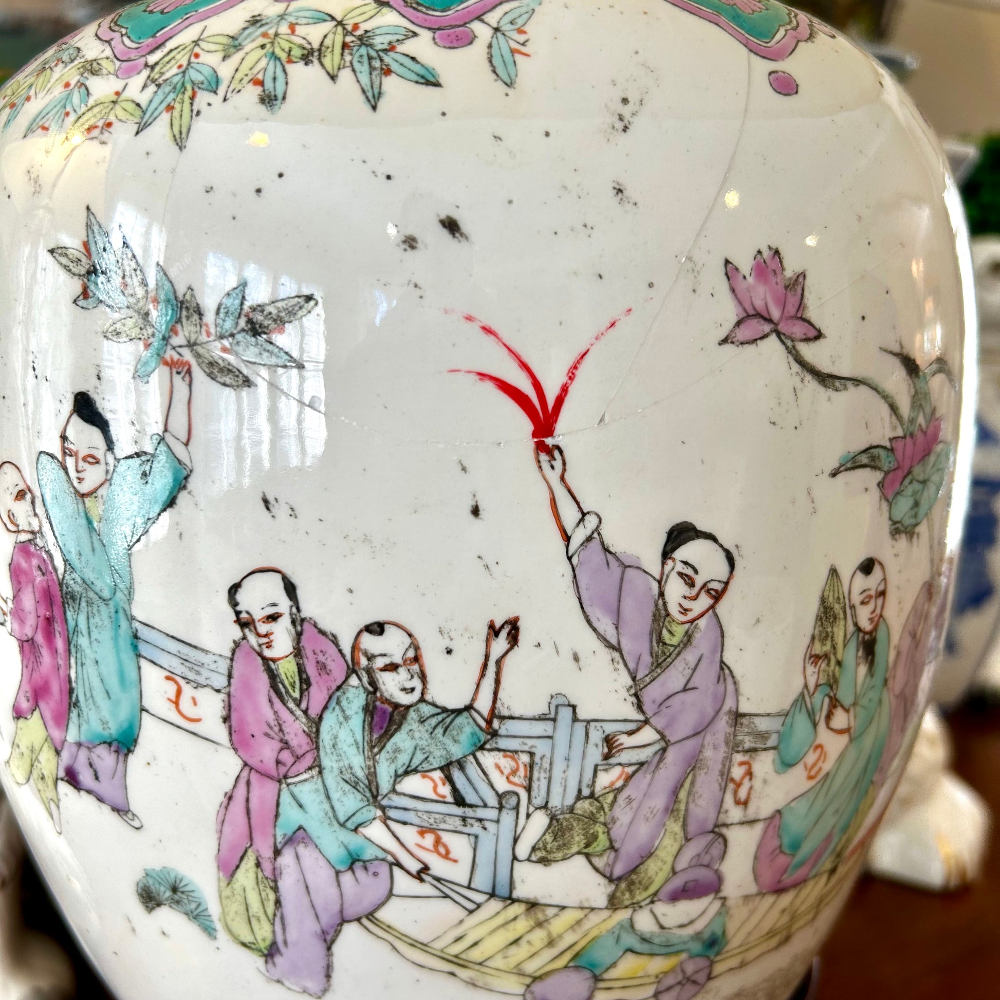 Antique porcelain chinoiserie rose Famille porcelain lamp, 29 in