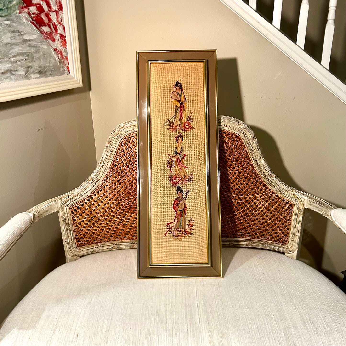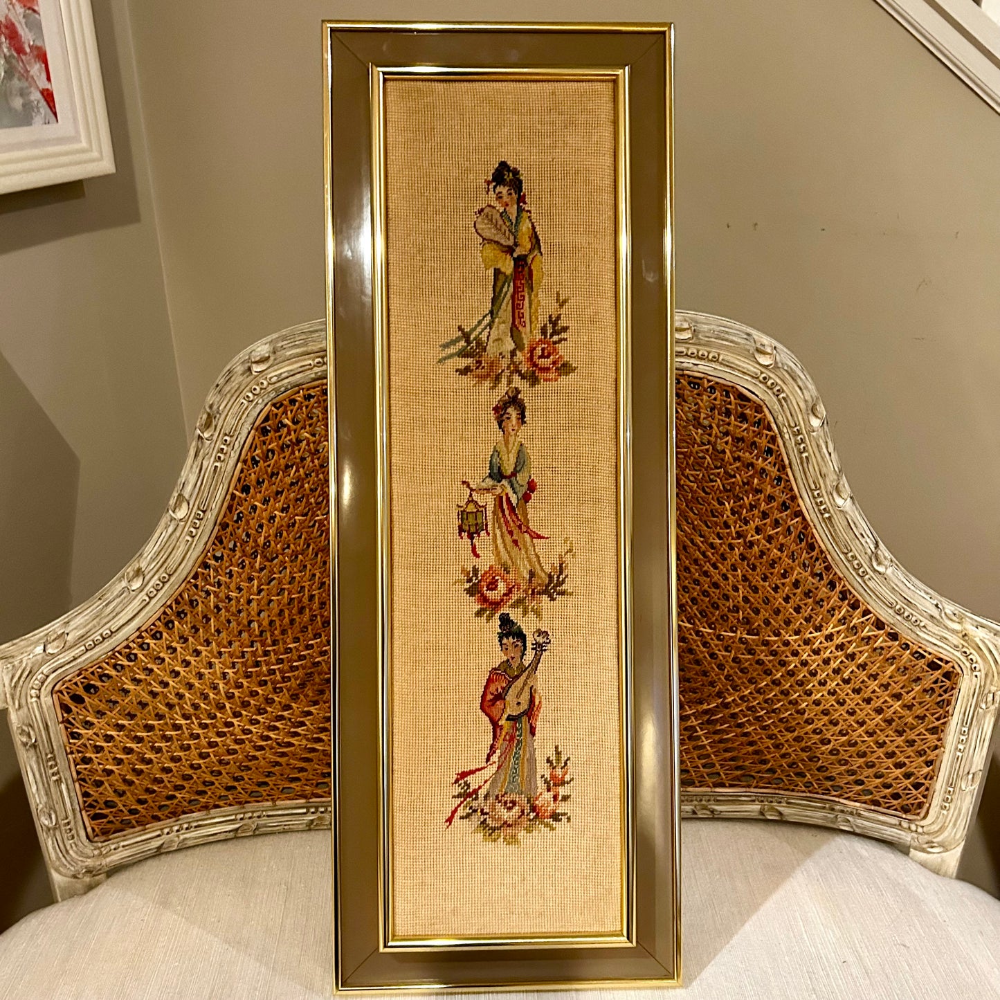Gorgeous custom chinoiserie needlepoint custom framed wall art