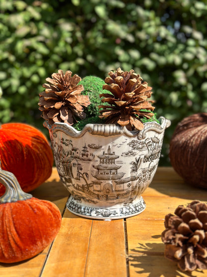 We couldn’t love this Black & White Porcelain Willow Footed Planter more! Standing tall at 6 inches, Its dimensions of 8L X 8W X 6H make it the perfect centerpiece! This is also a stunning wine bucket! The perfect size to add ice and your favorite white wine. Elevate your space with this exquisite and versatile piece!