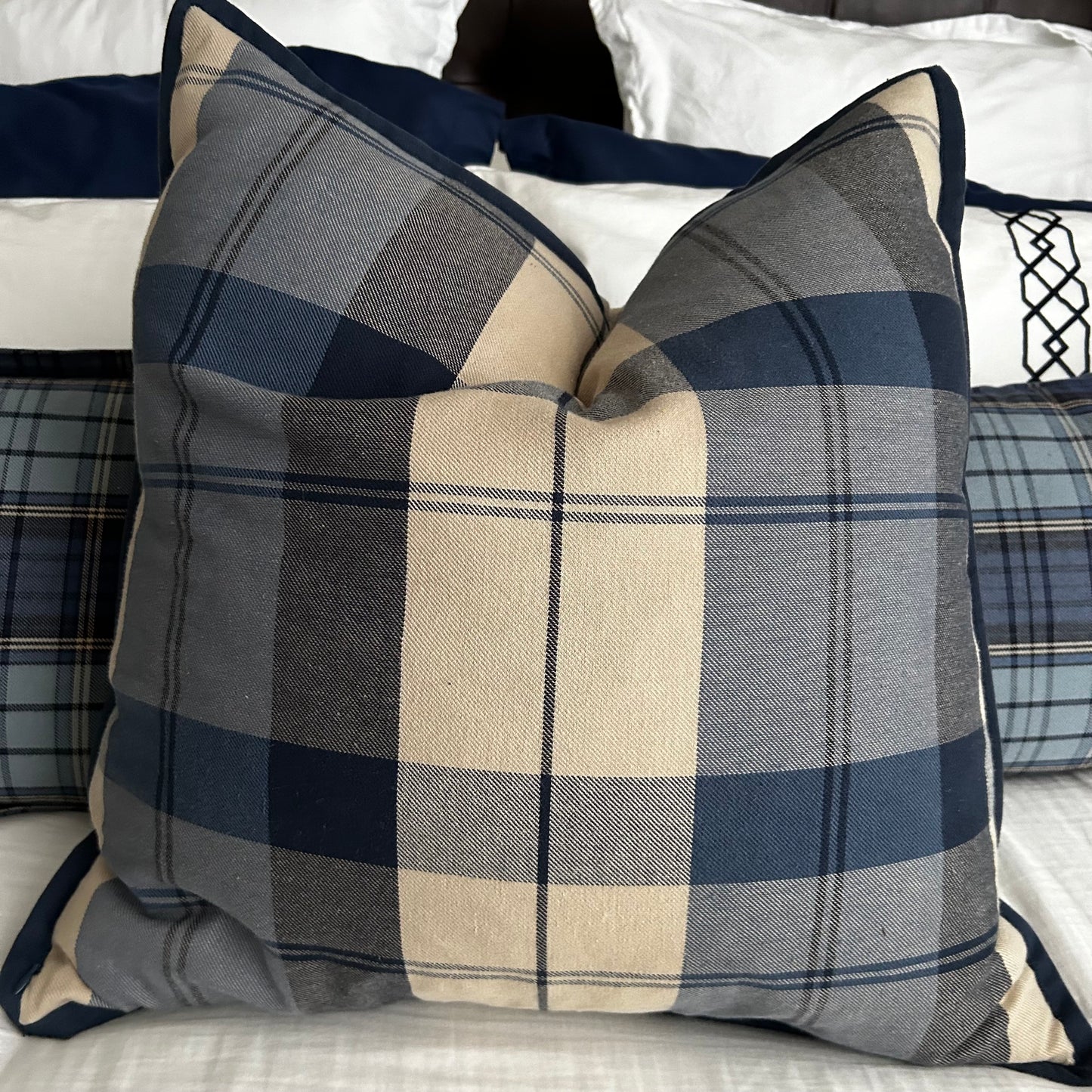 - set of 3 traditional plaid throw pillows