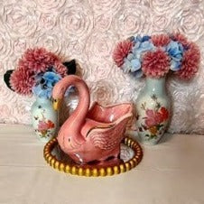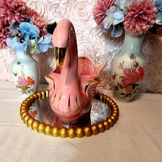 Adorn your home with the classic elegance of the Stanford Sebring Pink Swan. Crafted in the 1960's, this beautiful piece features a delightful pink hue with hint of gold highlights. Measuring 10 inches long, 6 inches wide and 8 1/2 inches tall, this swan is in excellent condition and brings a timeless air of sophistication to your decor!