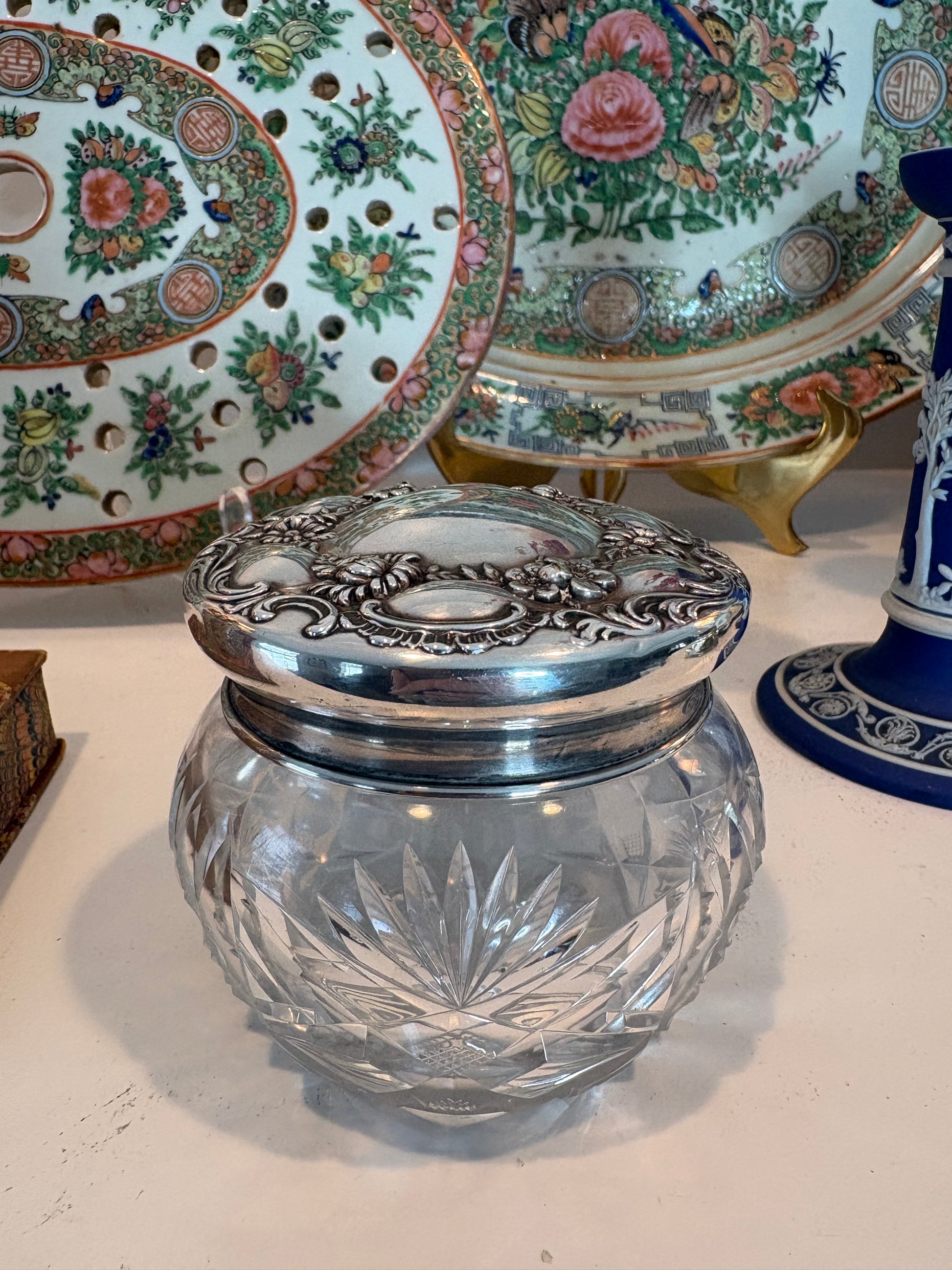 Sterling topped cut crystal Vanity Jar